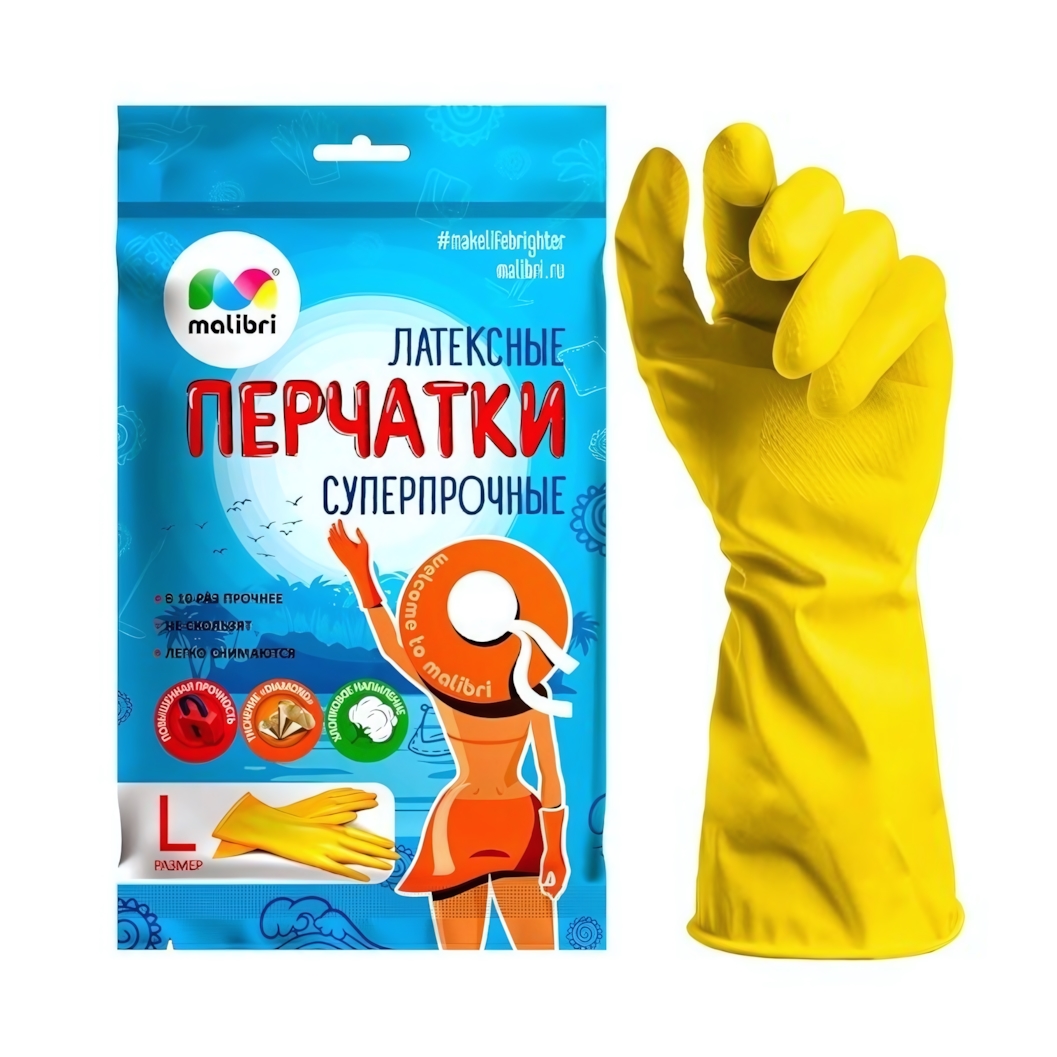 Латексные перчатки MALIBRI «суперпрочные» созданы для комфортной и безопасной работы по дому. Они эффективно защищают кожу рук от воды, моющих средств и бытовой химии, помогая сохранить мягкость и ухоженный вид кожи даже при частом контакте с агрессивной средой. Плотный материал и продуманная конструкция делают их практичным выбором для ежедневного использования.