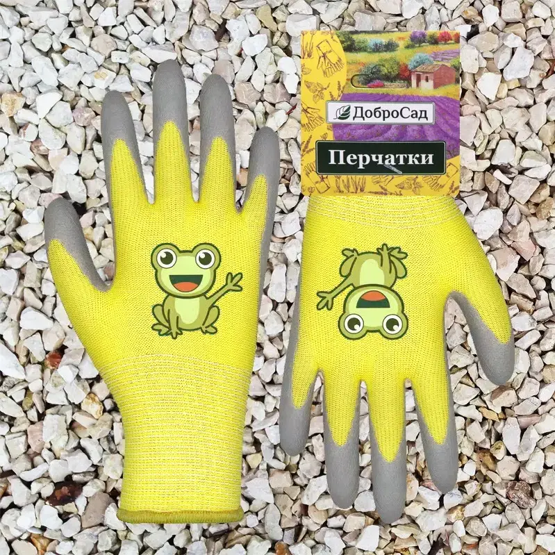 Перчатки нейлоновые детские «Little gardener» с изображением веселого лягушонка — это идеальный выбор для юных любителей садоводства. Они обеспечивают комфорт и защиту во время работы в саду, позволяя детям наслаждаться процессом и развивать свои навыки. Яркий желтый цвет и забавный дизайн делают их привлекательными для детей, а также способствуют повышению интереса к уходу за растениями.
