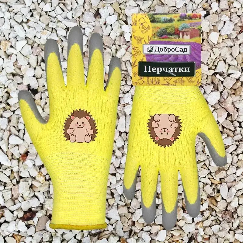 Перчатки детские 'Little gardener-Ёжик' нейлоновые, желтые, размер XS