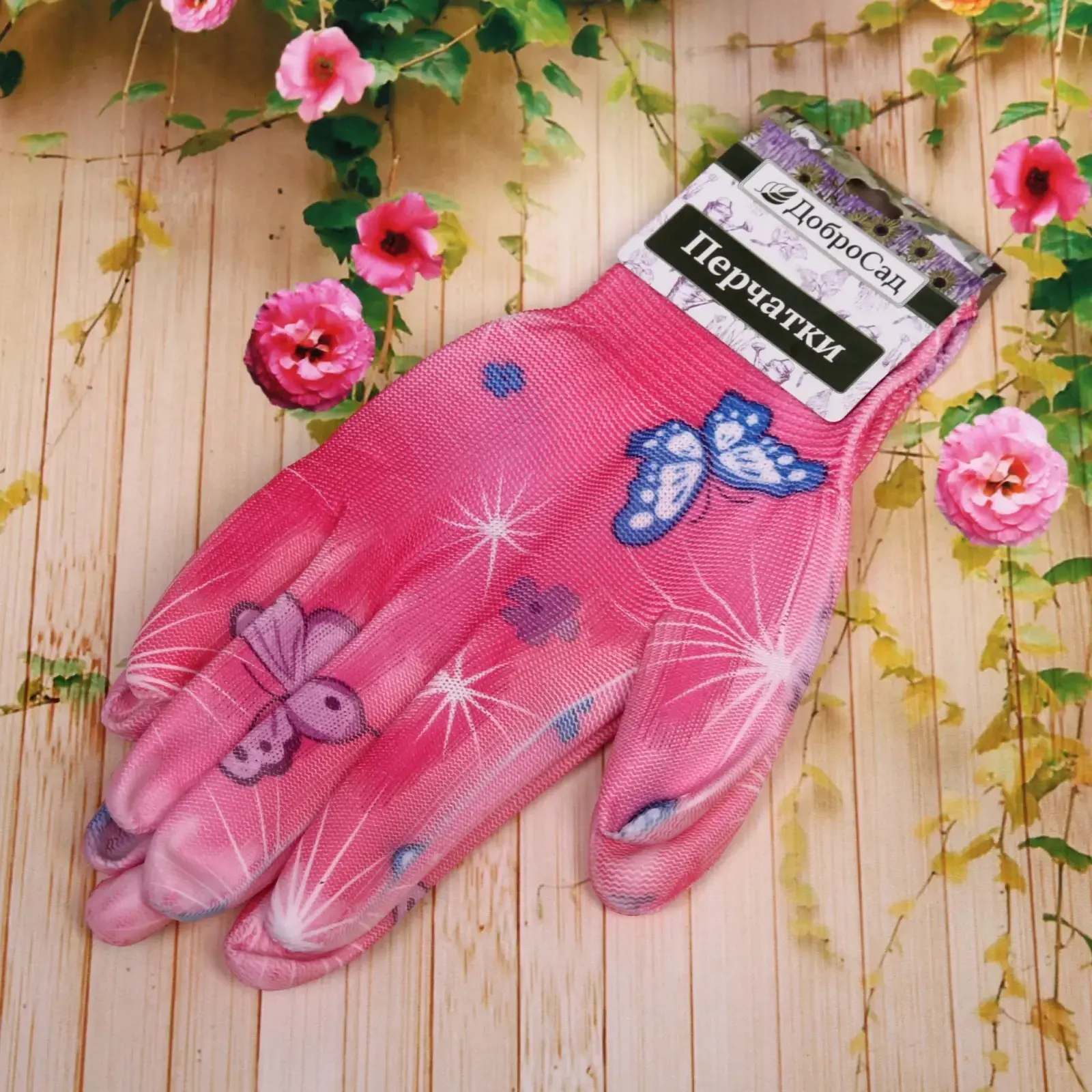 Перчатки садовые 'Фантазия-Бабочки', нейлон/ПВХ, розовые, 8 размер