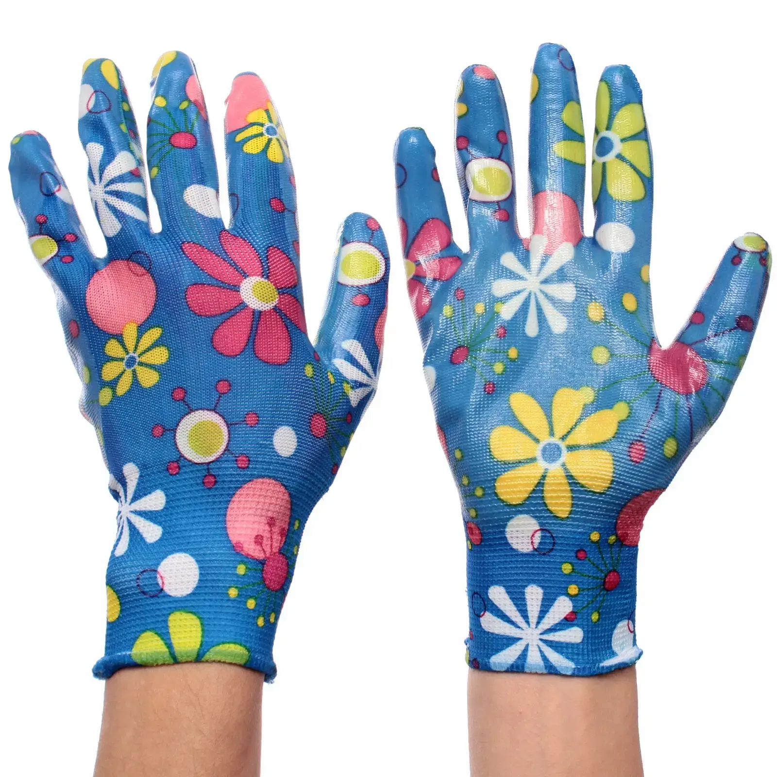 Перчатки выполнены из нейлона и резины, что делает их легкими и прочными. Размер 8 подходит для большинства пользователей. Яркий синий цвет с цветочным узором добавляет индивидуальности и делает их заметными на фоне садовых работ. Эти перчатки станут вашим надежным помощником в уходе за растениями и выполнении домашних задач.