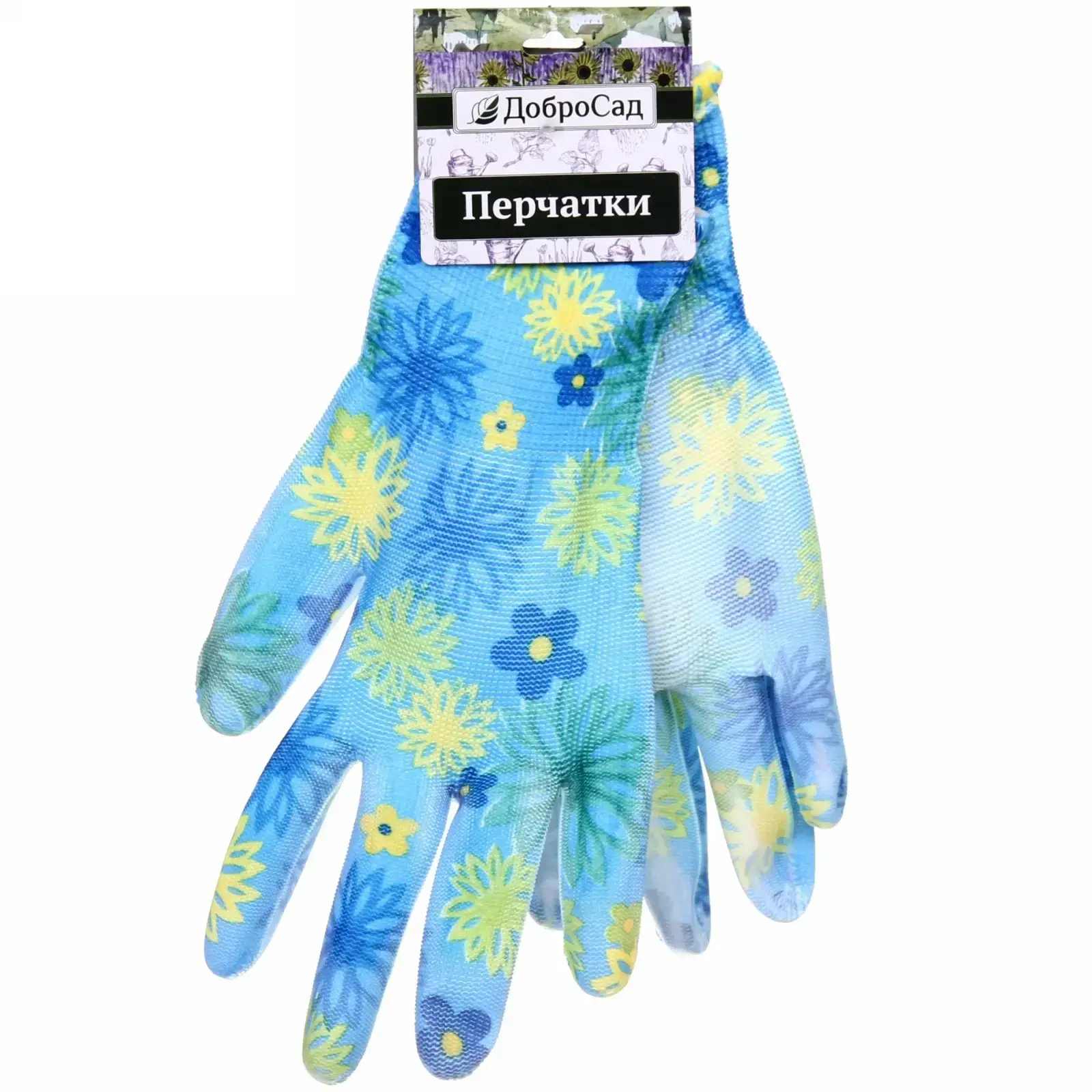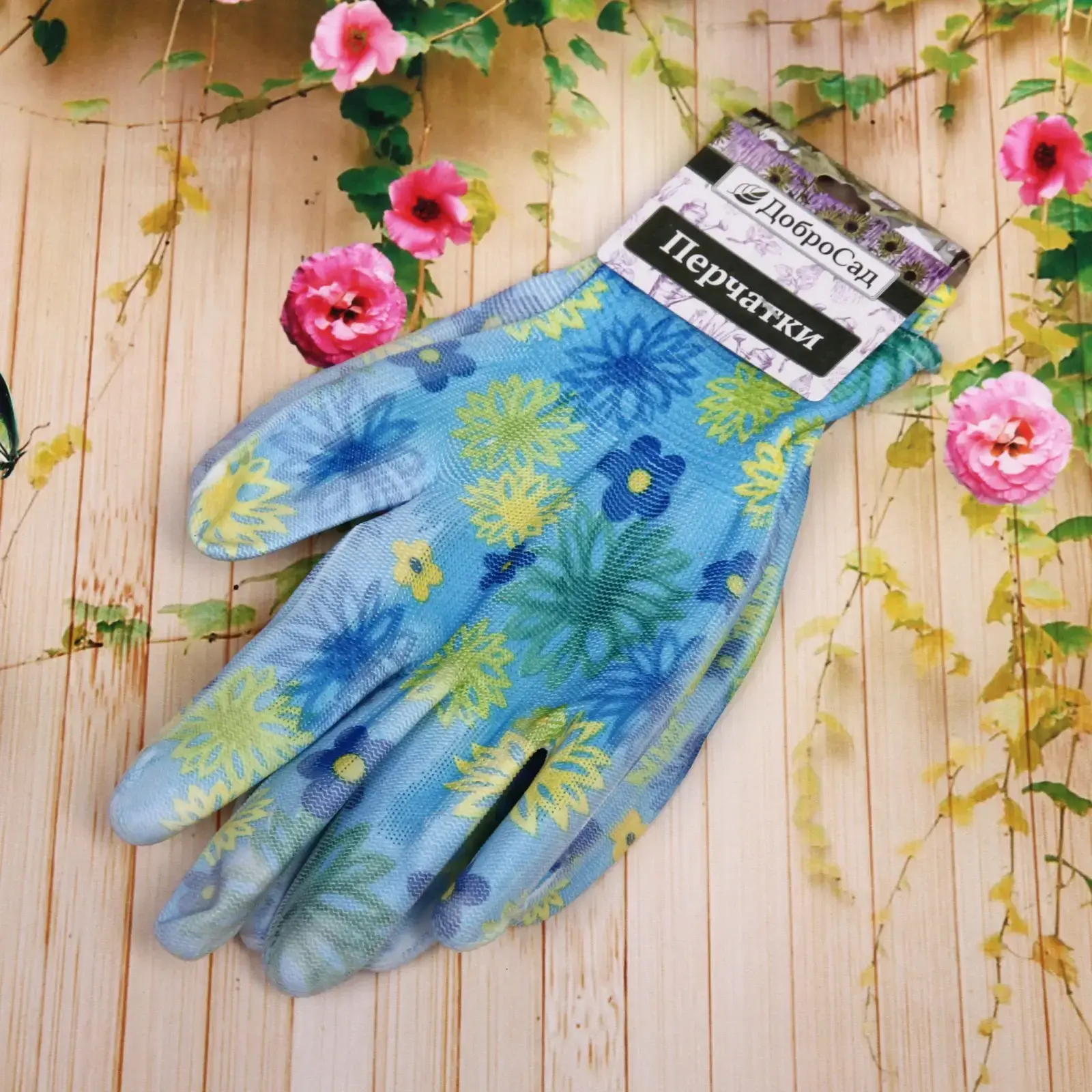Перчатки садовые "Фантазия-Васильки" с ПВХ покрытием, голубые, 8 размер