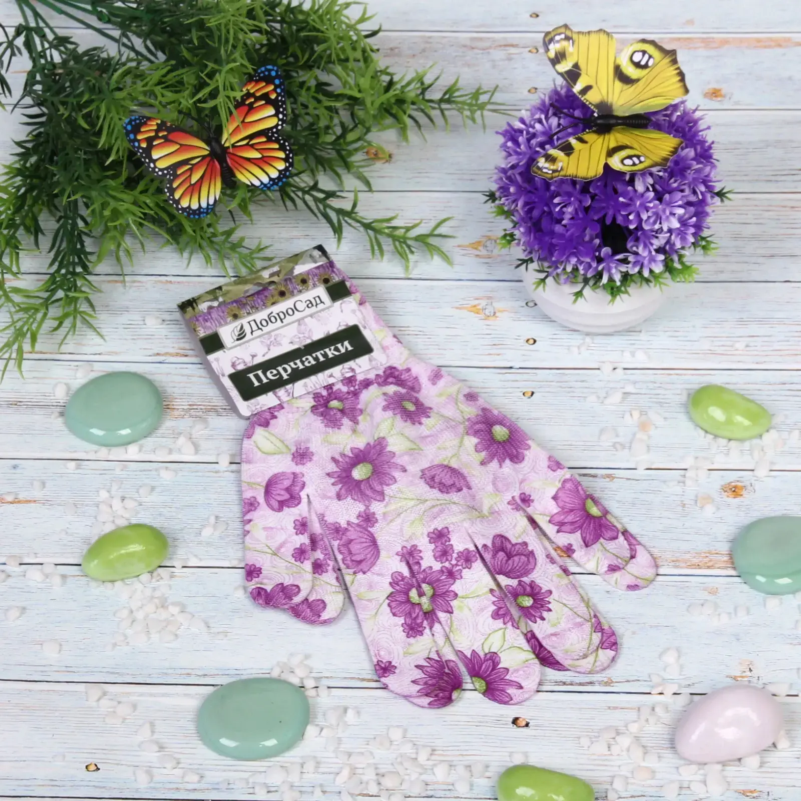 Перчатки нейлоновые "Лайт-Маргаритки", размер 8, цвет розовый/фиолетовый