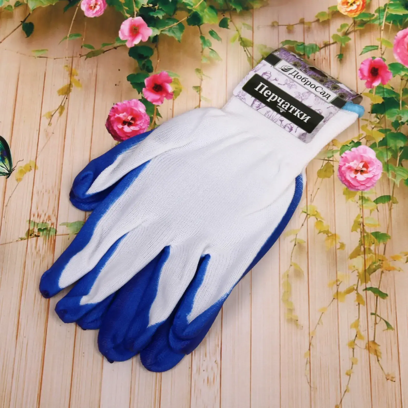 Перчатки садовые "ДоброСад" с резиновым покрытием, размер 8, нейлон/синий