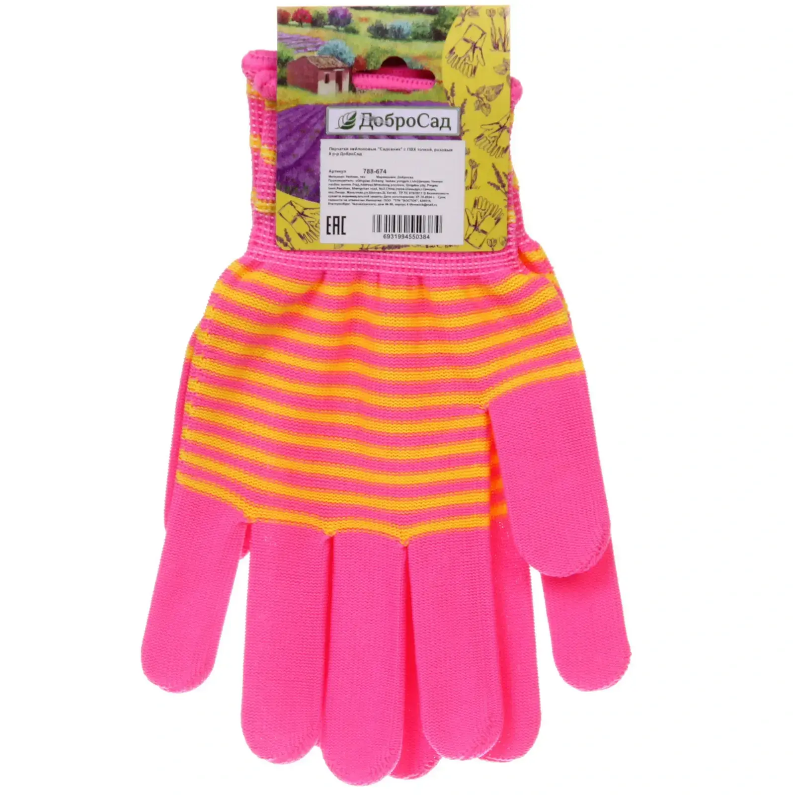 Перчатки нейлоновые «Садовник» с ПВХ точкой, розовые, размер 8, двойной оверлок и резиновая манжета