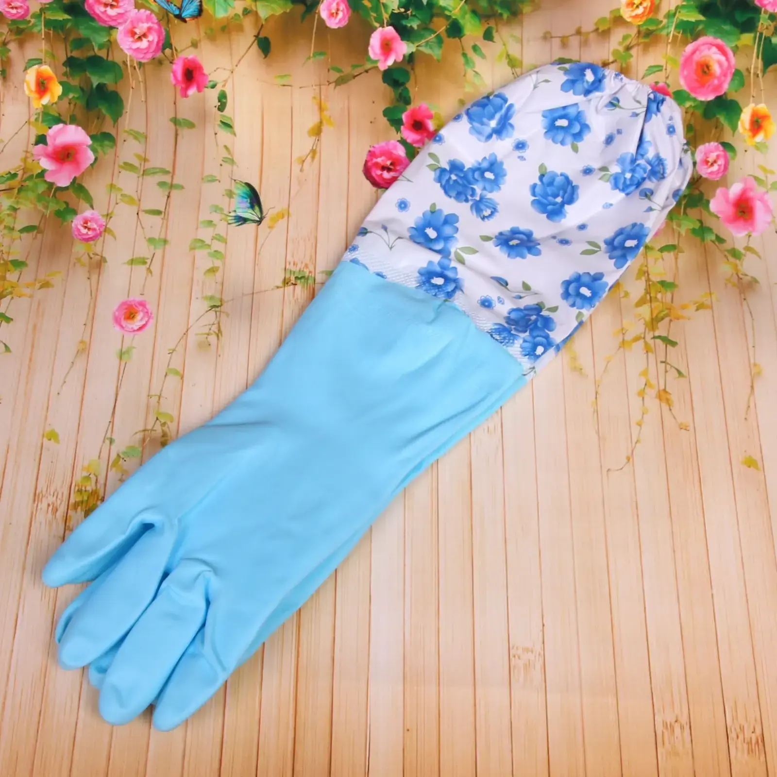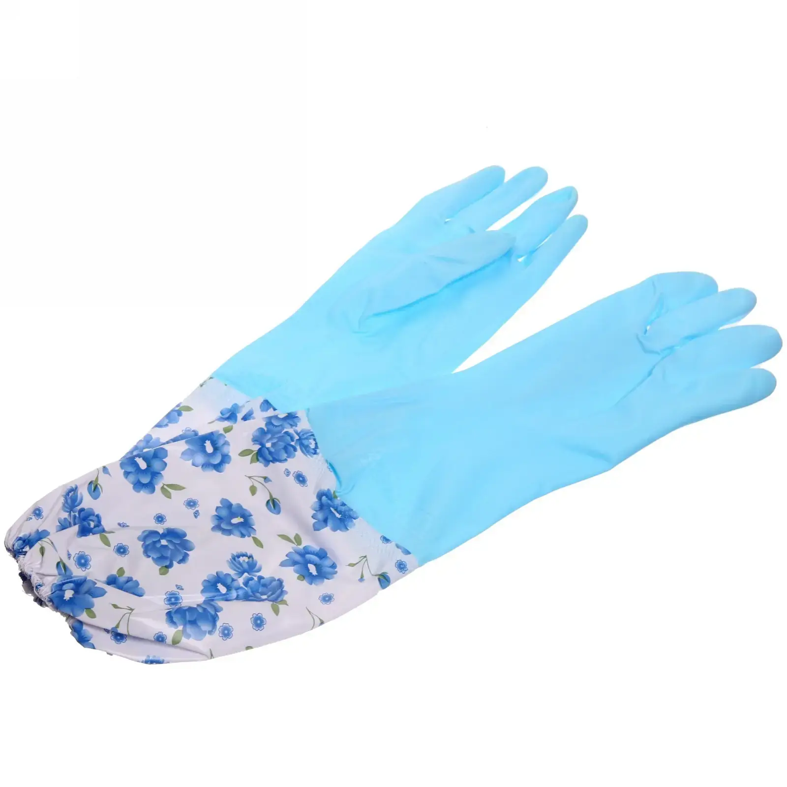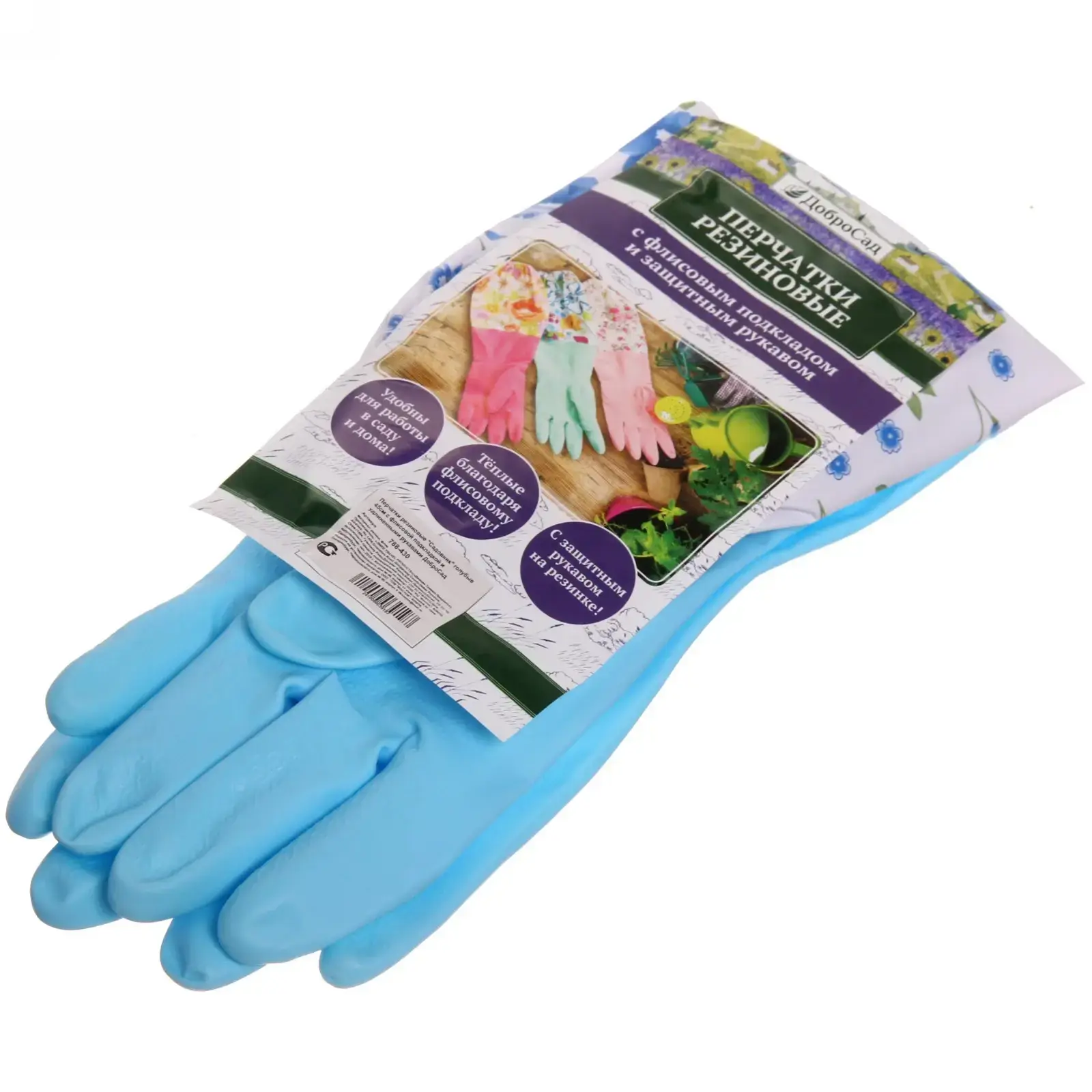 Перчатки садовые 'Садовник' 45см, голубые/цветы, ПВХ с флисом