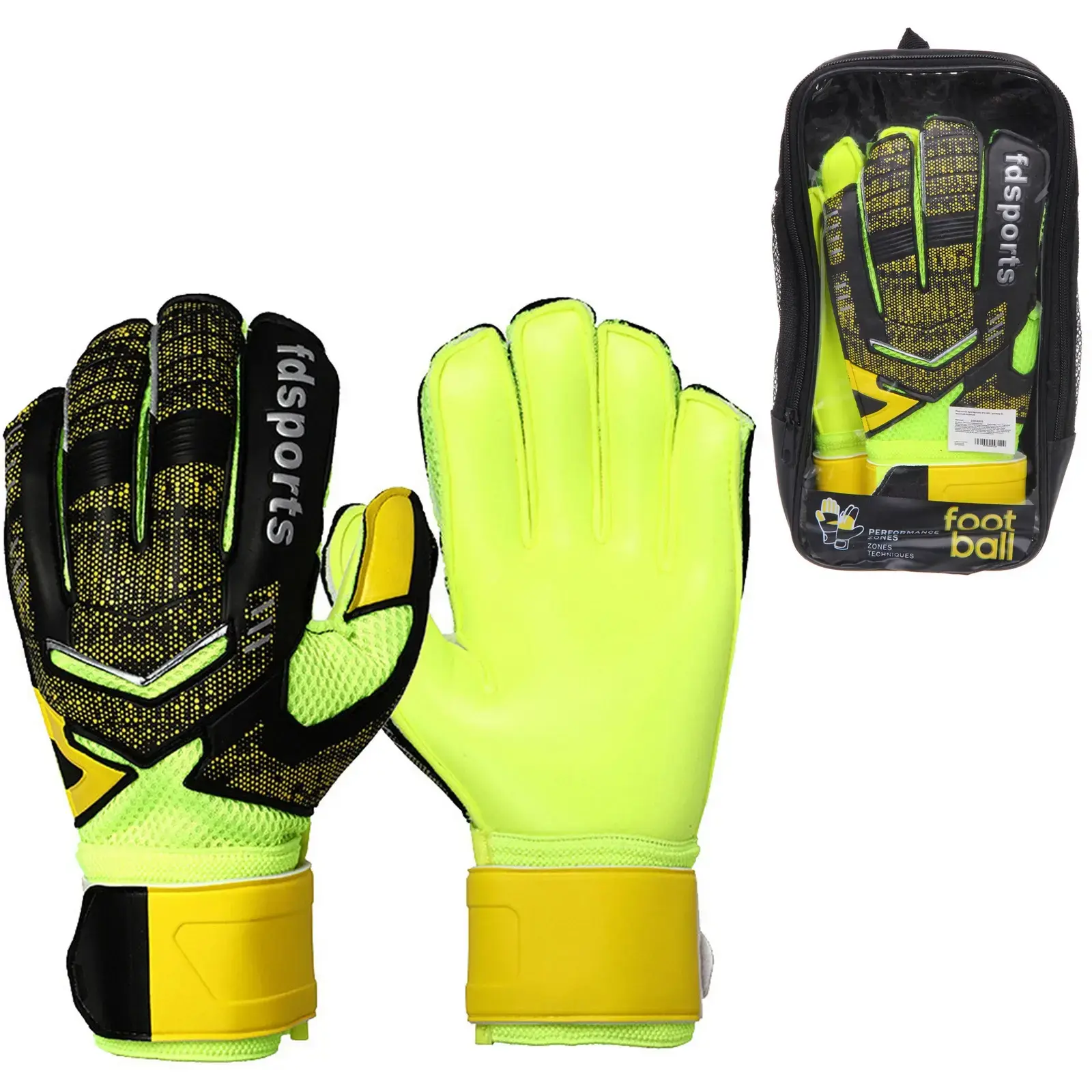 Перчатки вратарские FD-882 — это идеальный выбор для футбольных вратарей, которые ценят качество и комфорт. Яркий желтый цвет с черными элементами не только привлекает внимание, но и обеспечивает отличную видимость на поле. Эти перчатки помогут вам уверенно защищать ворота, благодаря специальному покрытию, которое улучшает захват мяча.