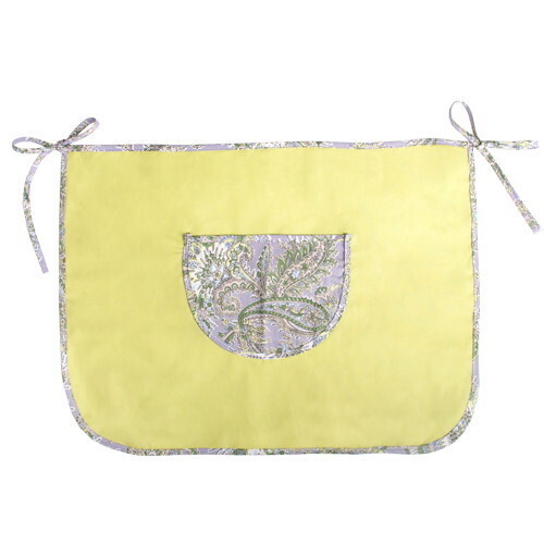 Размер передника составляет 55х40 см, что делает его универсальным для большинства пользователей. Ярко-желтый цвет основной части и декоративный карман с цветочным узором придают ему стильный вид. Обработанные края и аккуратное оформление делают этот передник не только функциональным, но и эстетически привлекательным.