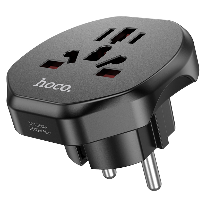 Переходник сетевой HOCO «AC6», универсальный для всех вилок, 3 розетки + USB, 10A, черный