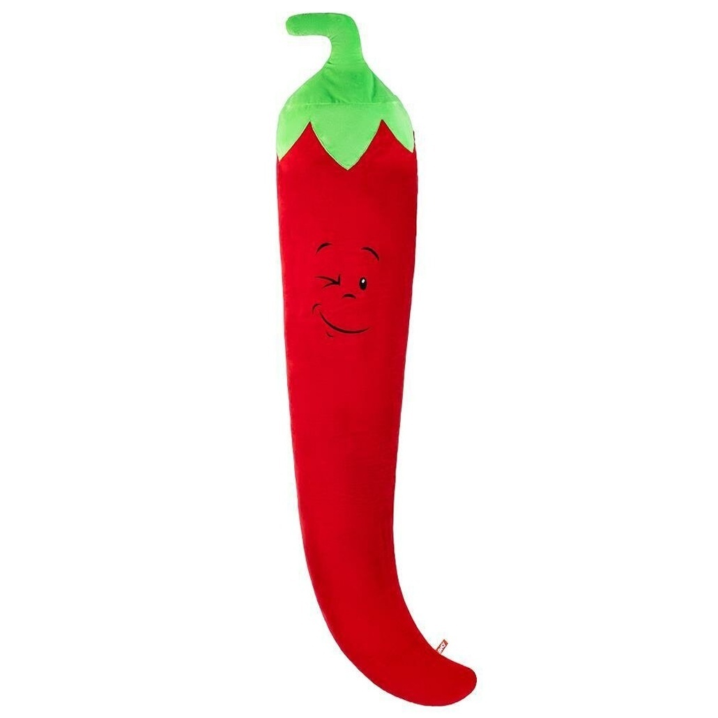 Размер: 150 см — внушительная длина, создающая эффект вау. Материал: мягкий плюш, приятный на ощупь; текстиль в отделочных деталях; наполнитель – полиэфирное волокно, устойчивое к деформации и сохраняющее форму. Основной цвет – ярко-красный с зелёной верхушкой, имитирующей листья перца. На лицевой стороне — мультяшное выражение лица, придающее игрушке характер и индивидуальность.