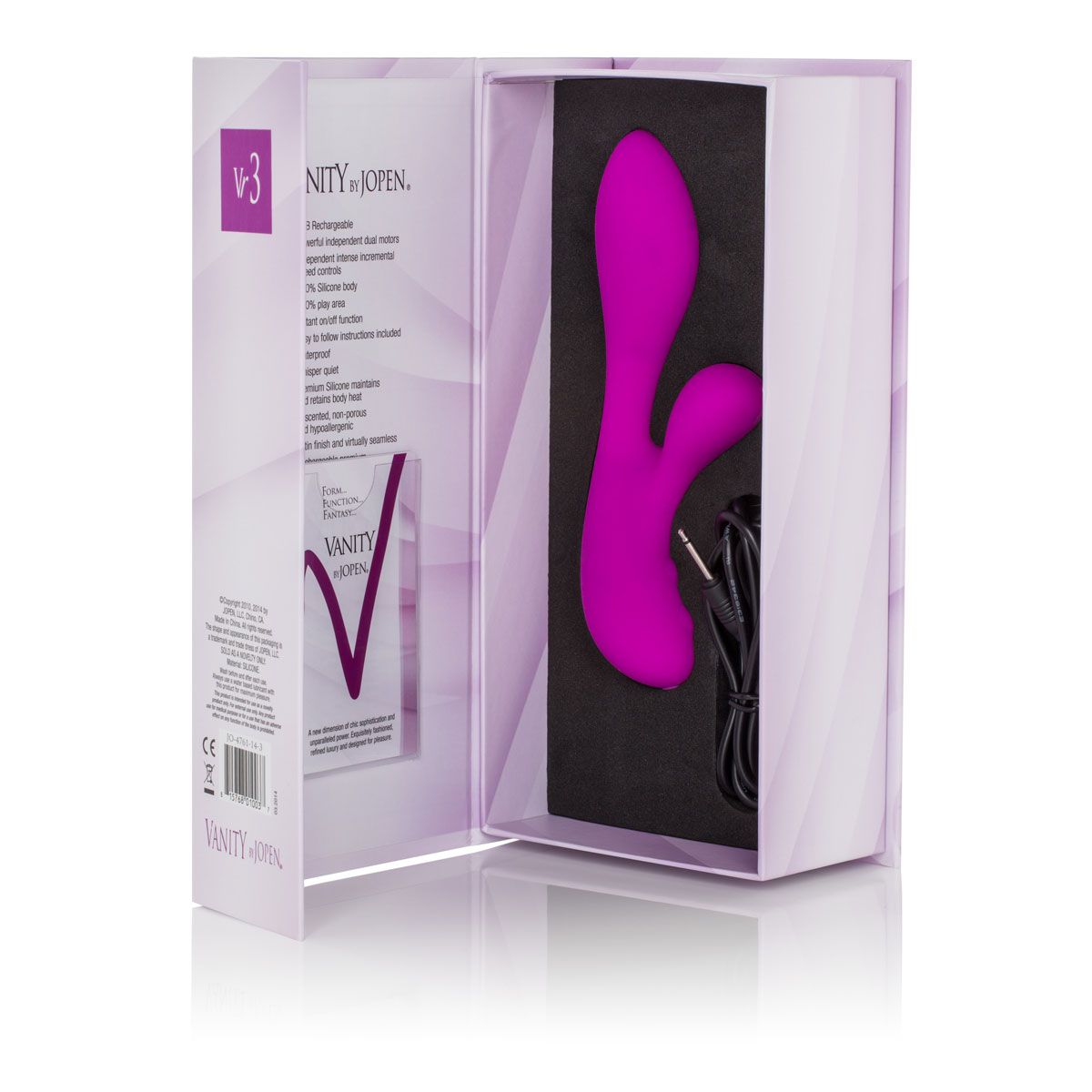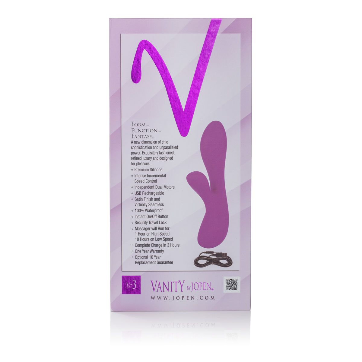 Эргономичный дизайн Jopen Vanity Vr3 создан для того, чтобы легко достигать точечной стимуляции точки G, зоны вульвы и нежного клитора. Позвольте себе расслабиться и открыть новые грани интимного комфорта с этим технологичным и стильным аксессуаром.