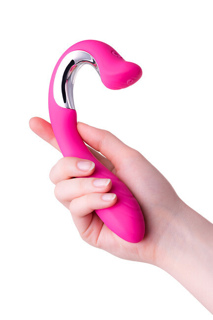 Эргономичный вибратор с анатомическим изгибом для точечной стимуляции чувствительных зон. Два независимых мотора обеспечивают 10 вариантов вибрации — от нежных пульсаций до интенсивных волн.