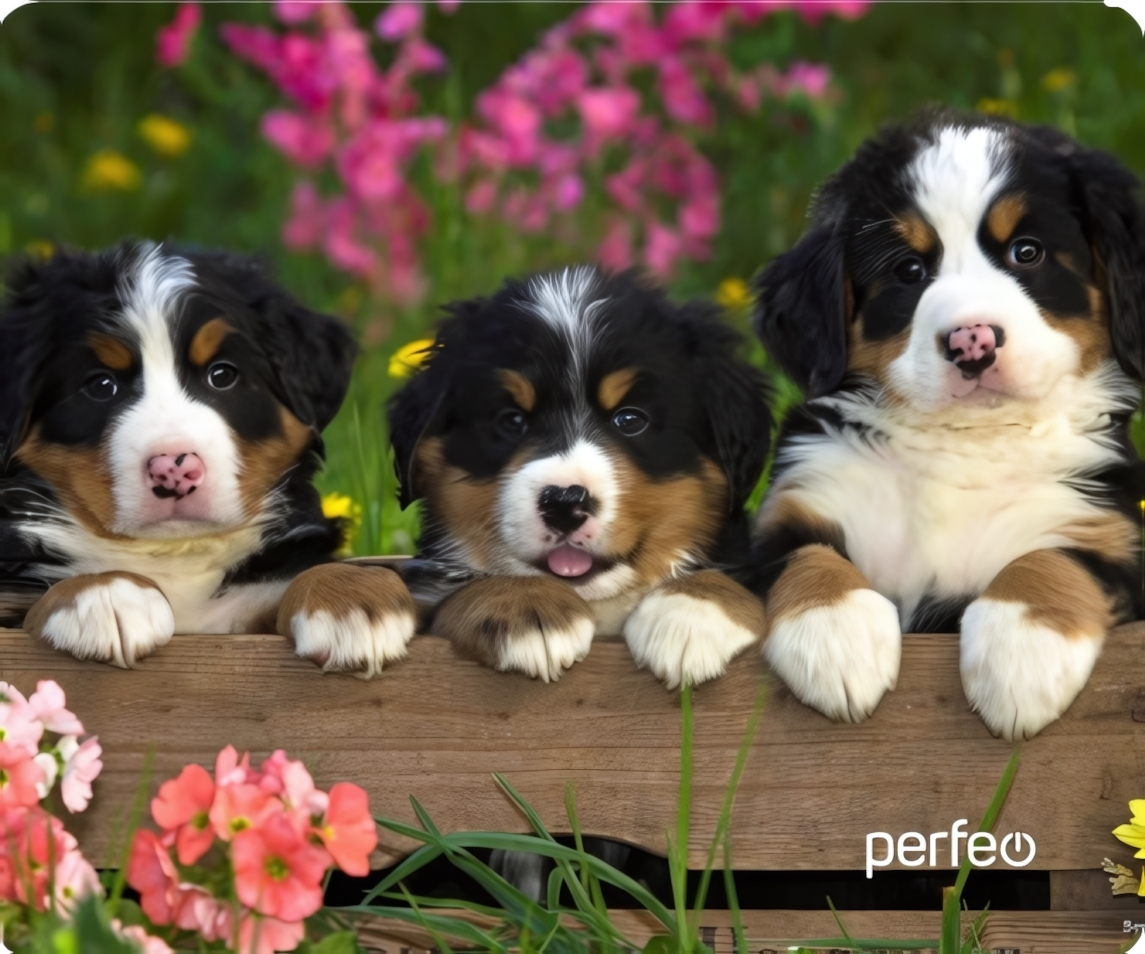Подарите себе комфорт во время работы за компьютером с этим практичным ковриком для мыши. На поверхности изображены игривые щенки бернского зенненхунда, которые создают уютную атмосферу и поднимают настроение каждый раз, когда вы смотрите на свой рабочий стол.