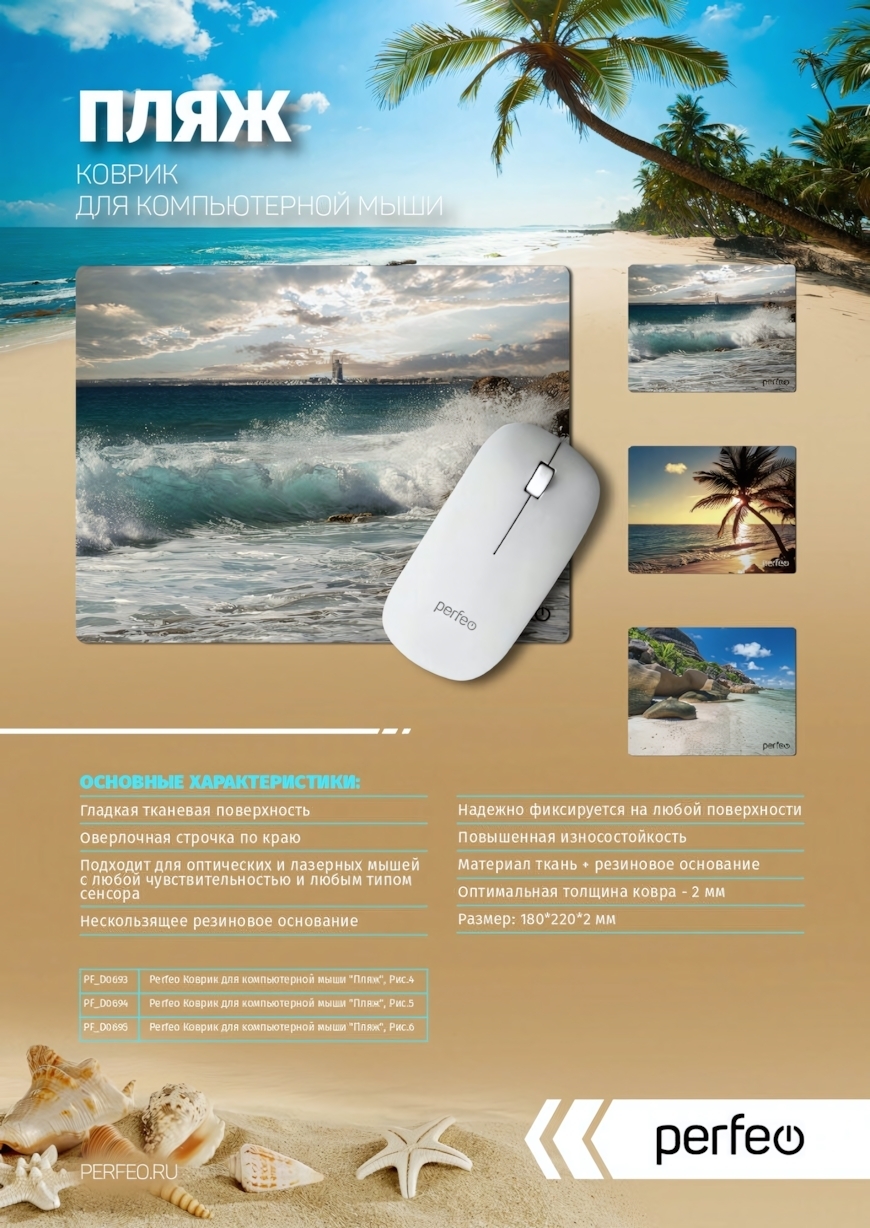 Погрузитесь в атмосферу летнего отдыха с ковриком для мыши 'Пляж'. Этот аксессуар не только украсит ваш стол, но и обеспечит комфорт во время работы или игр. Благодаря гладкой тканевой поверхности и резиновому основанию, коврик надежно фиксируется на столе, предотвращая скольжение и обеспечивая стабильность при использовании.