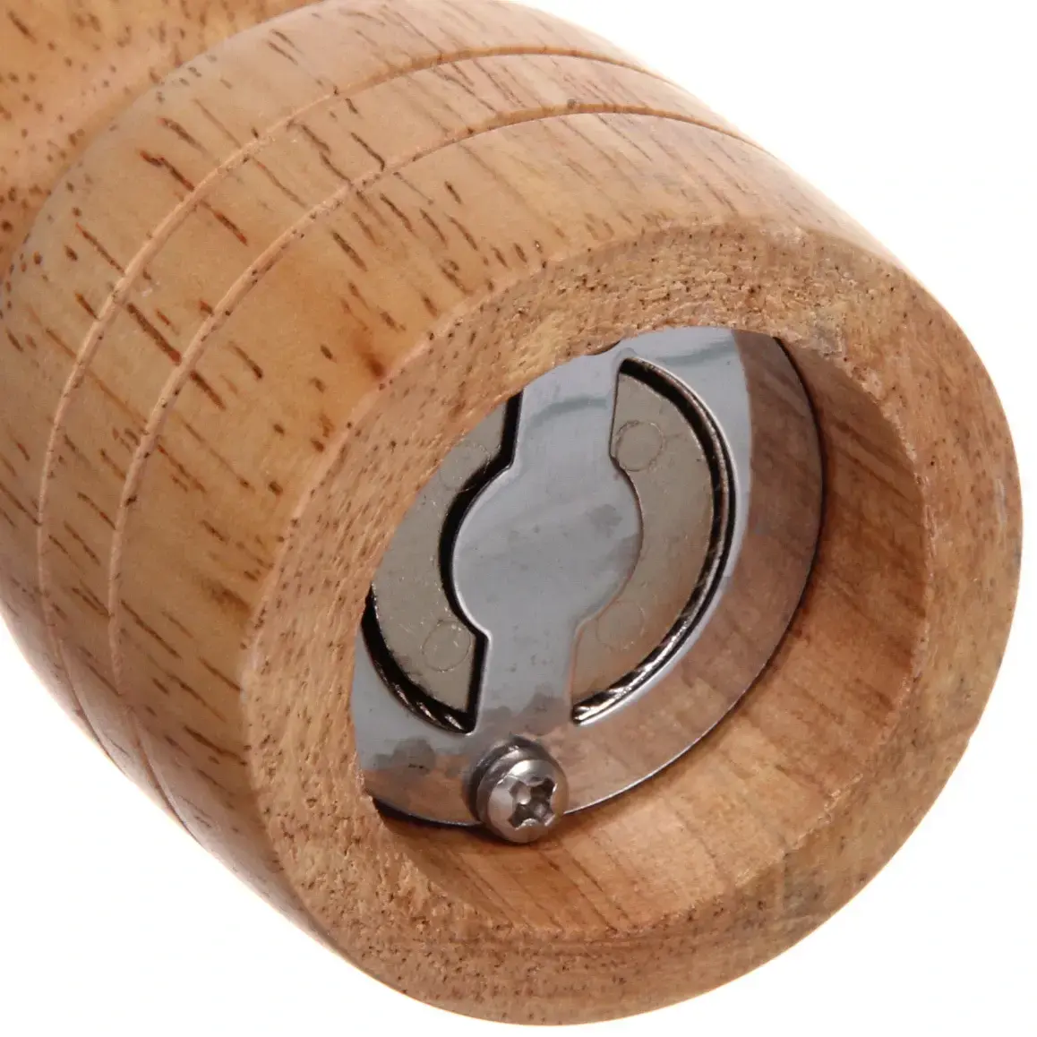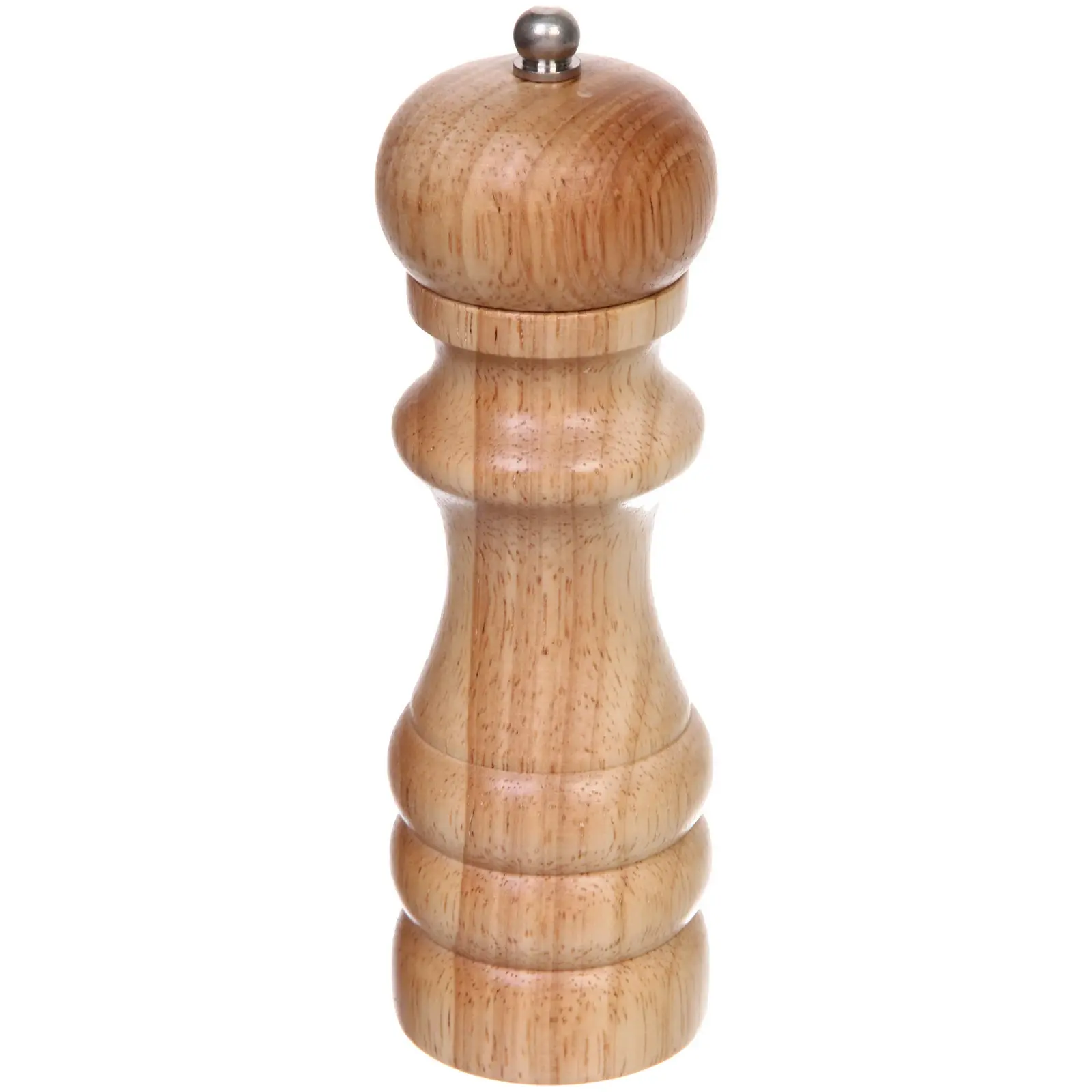 Размеры перцемолки составляют 16 см в высоту и 5 см в диаметре, что делает её компактной и удобной для хранения. Светлое дерево с натуральной текстурой придаёт изделию уникальный вид, а металлический элемент в верхней части добавляет функциональности и стиля. Эта мельница станет отличным подарком для любителей кулинарии и ценителей качественных кухонных принадлежностей.