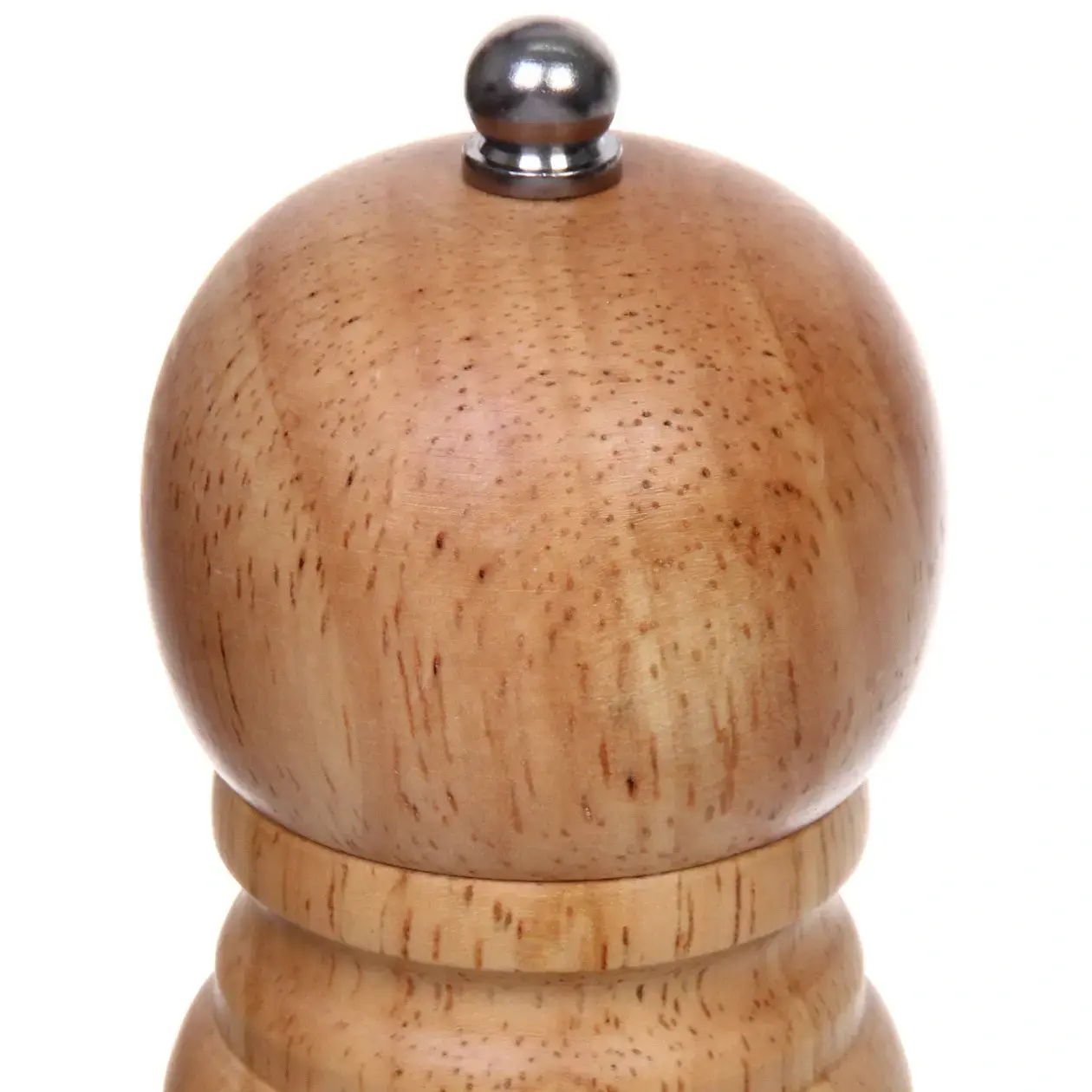 Перцемолка имеет размеры 21 см в высоту и 5 см в диаметре, что делает её компактной и удобной для хранения. Материал — высококачественное дерево, которое не только красиво выглядит, но и безопасно для здоровья. Металлические элементы добавляют прочности и надежности конструкции.