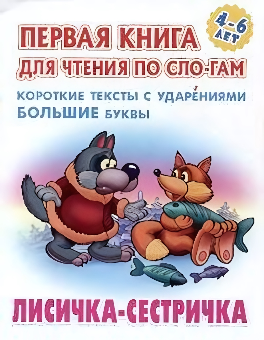 Книга для чтения по слогам, "Лисичка-сестричка", 4-6 лет, короткие тексты с ударениями