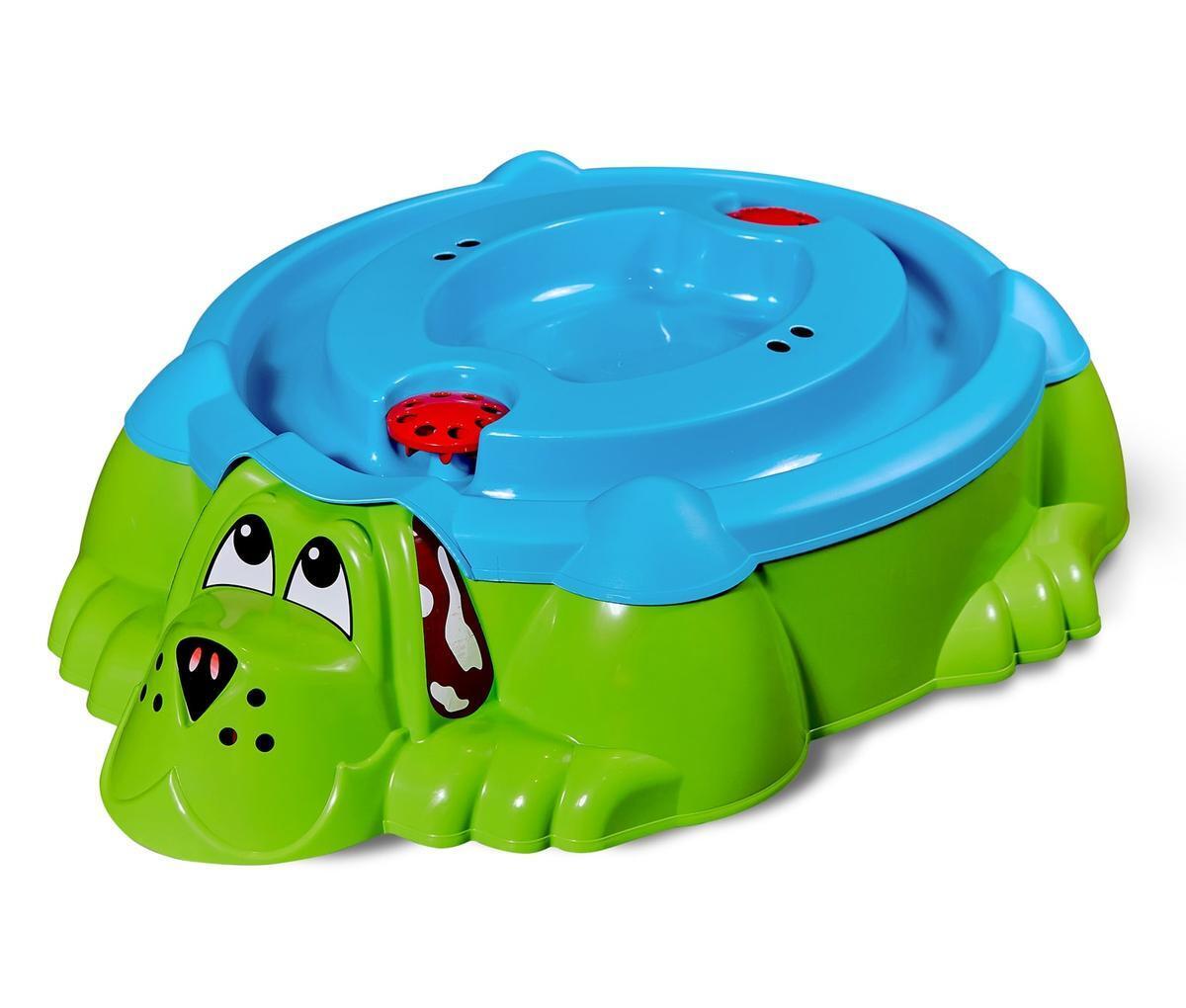 Песочница детская "Собачка" Sheffilton KIDS, зеленая с голубой крышкой, для игр с песком и водой