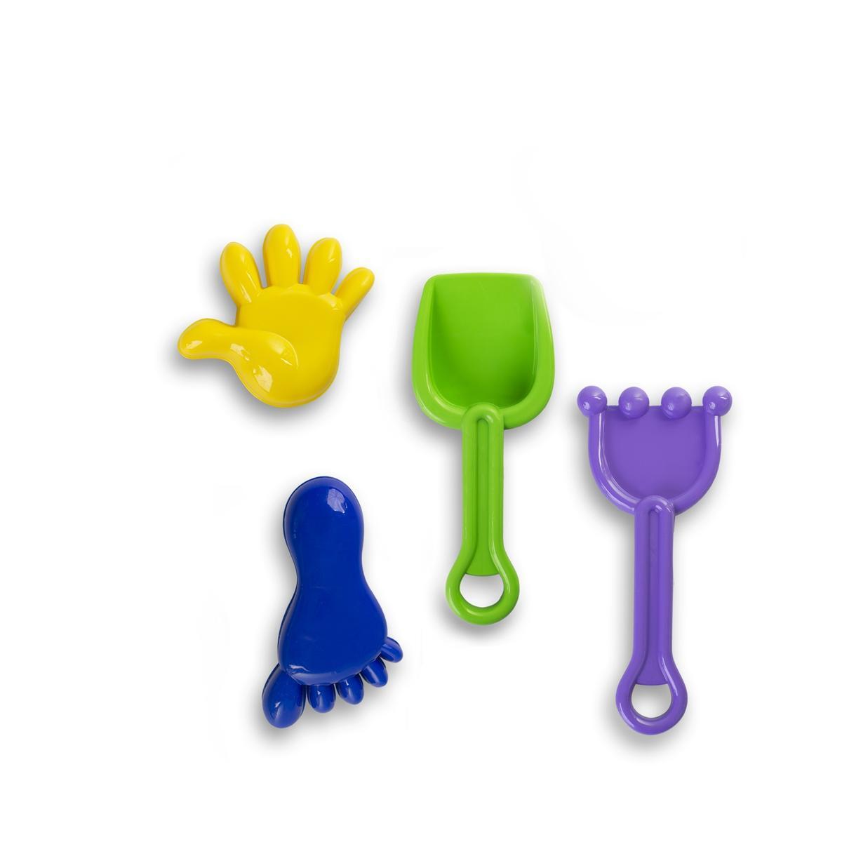 В набор входят: совок, грабли и две формочки в виде рук и ног. Все игрушки выполнены из безопасного пластика и подходят для детей от 3 лет. Размеры игрушек оптимальны для детских рук, что делает их удобными в использовании. Песочный набор №19 станет отличным подарком для вашего малыша и поможет сделать каждую игру незабываемой!