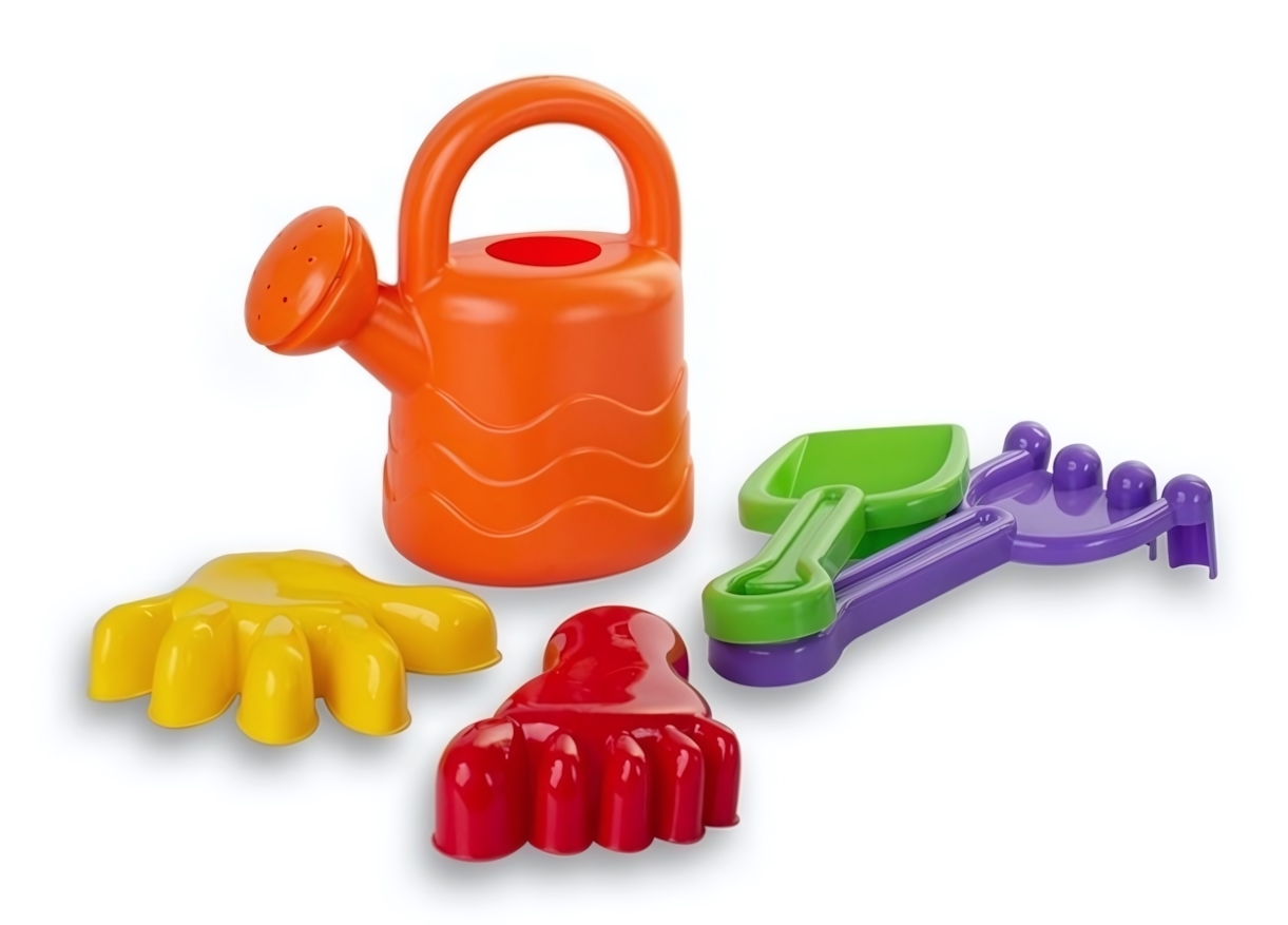 Песочный набор №35 "Руки-ноги": совок, грабли, 2 формочки, лейка, пластик, яркие цвета