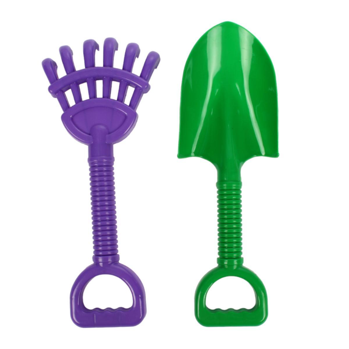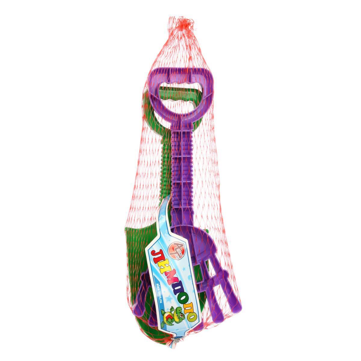 Песочный набор 'АлексТойз' лопатка и грабли, пластик, зеленый/фиолетовый