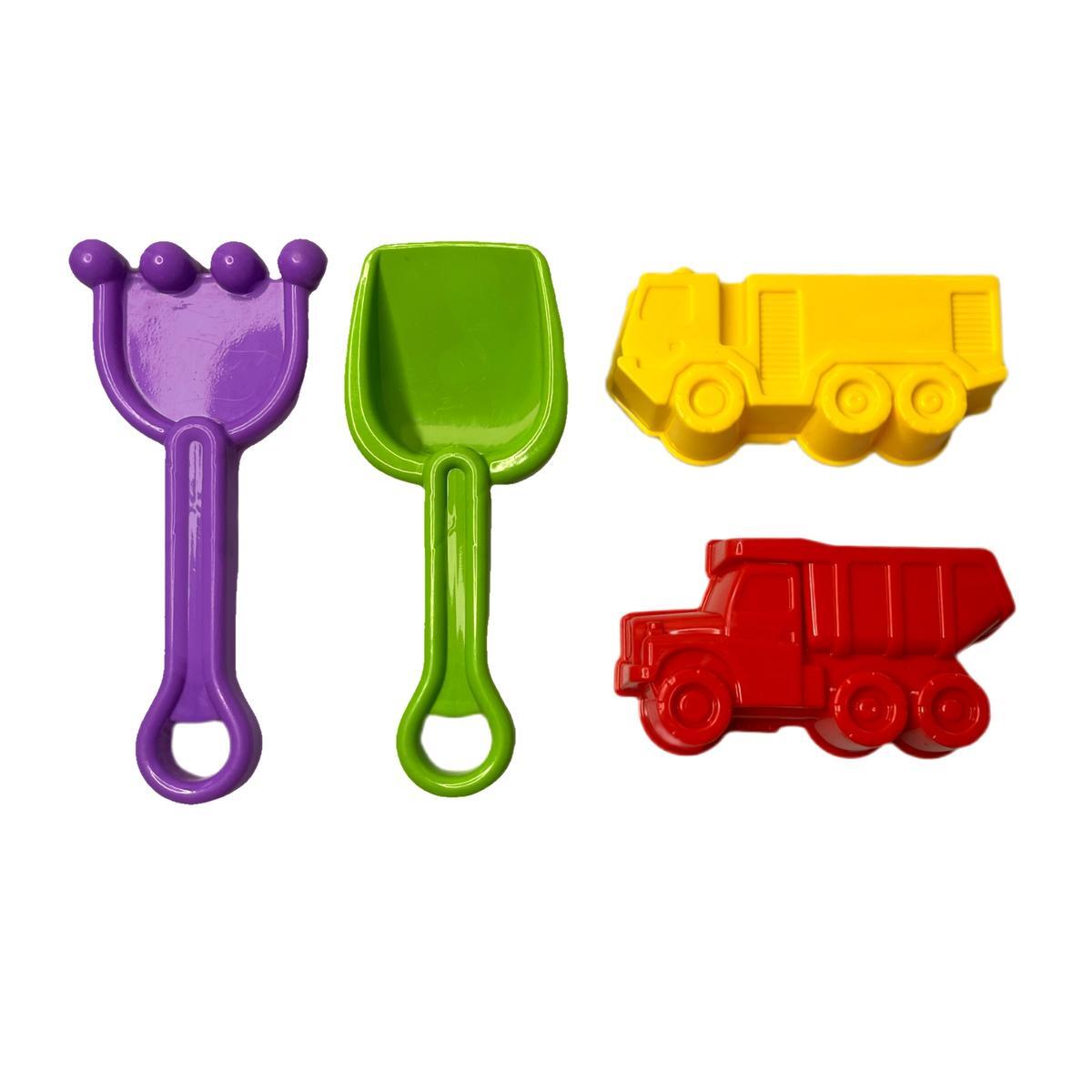 Песочный набор для творчества: совок №4, грабли №4, 2 формочки грузовики, пластик, яркие цвета
