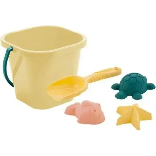 В комплекте один песочный набор: ведро, лопатка, три формочки. Цвет элементов — в ассортименте, отгружается один товар, расцветка определяется случайным образом. Все части удобно хранить и брать с собой на прогулку, что делает этот набор практичным выбором для детских развлечений на природе.