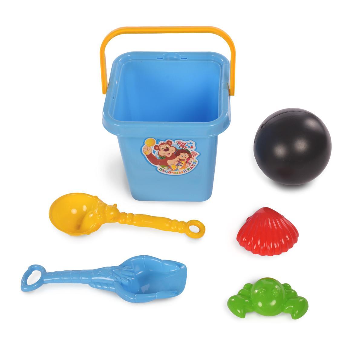 - Ведерко синего цвета с удобной желтой ручкой