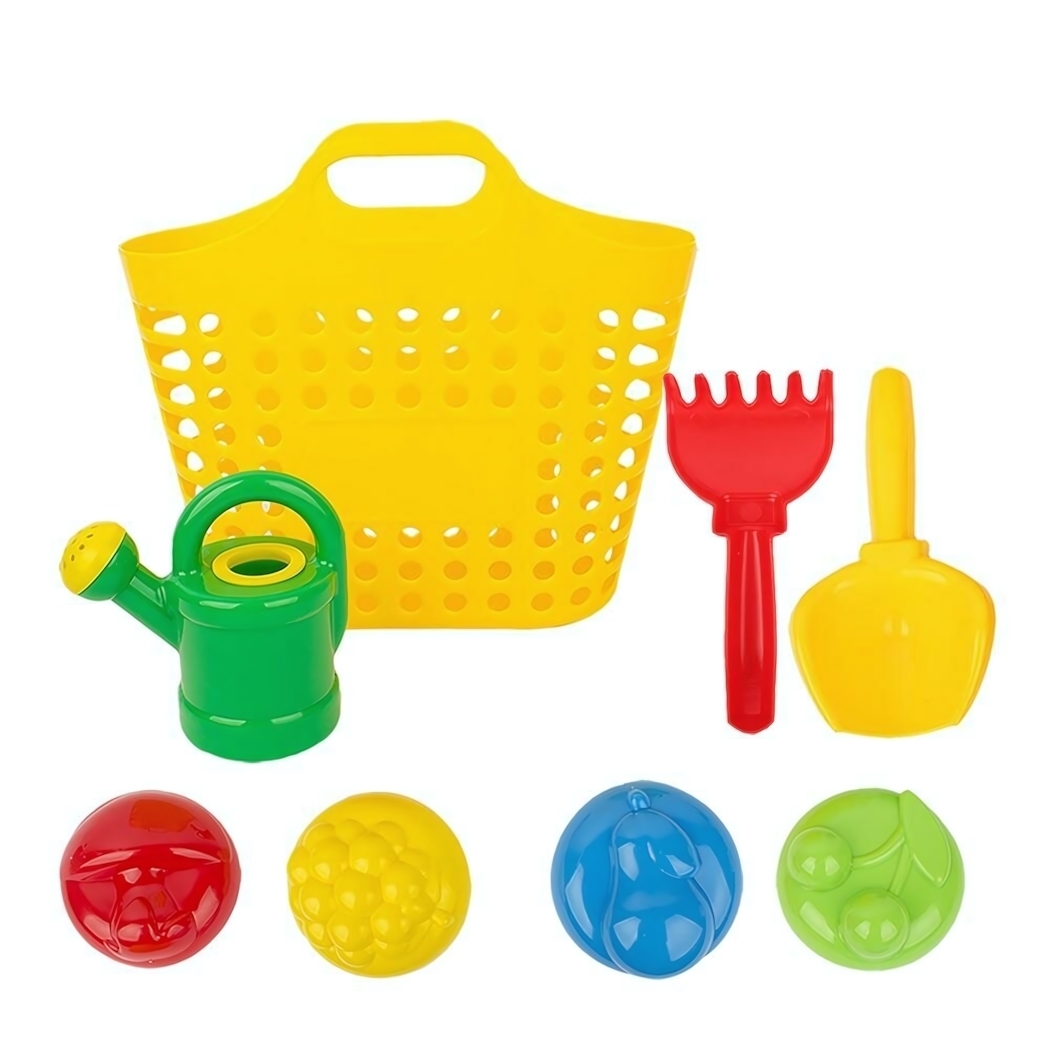 Песочный набор включает в себя все необходимые элементы для веселых игр: корзинку для хранения, совок, грабли и четыре формочки. Корзина удобна для переноски и хранения игрушек, а яркие цвета привлекают внимание детей. Набор подходит для игр как на пляже, так и в песочнице, что делает его универсальным выбором для летнего отдыха.