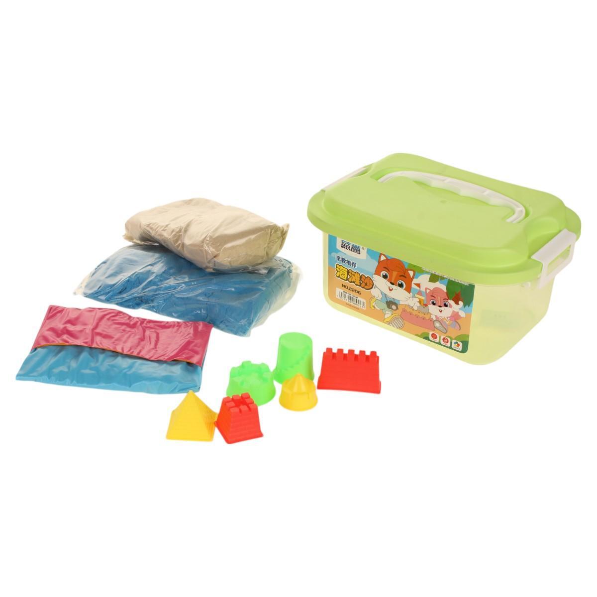 Набор для лепки с кинетическим песком, развитие моторики, пластиковый контейнер, 3 цвета, 8 формочек