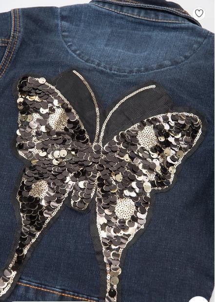 Куртка выполнена из качественной джинсовой ткани, которая обеспечивает комфортное ношение. Декоративные элементы из пайеток добавляют изделию особый шарм, делая его центральным элементом детского гардероба.