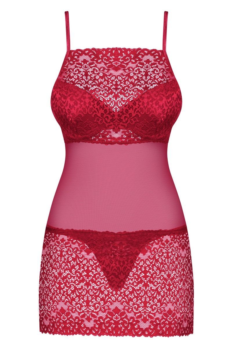 Сорочка эротическая Lividia, размер L-XL, красная, кружево/тюль
