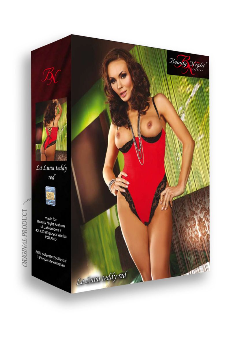 Боди-тедди "La Luna" с открытым лифом — это идеальный выбор для создания незабываемого образа. Сочетание дерзкого дизайна и комфортной посадки подарит вам уверенность и чувство собственной неотразимости. Модель выполнена в страстном красном цвете с черными акцентами, что создает яркий контраст и приковывает взгляды.