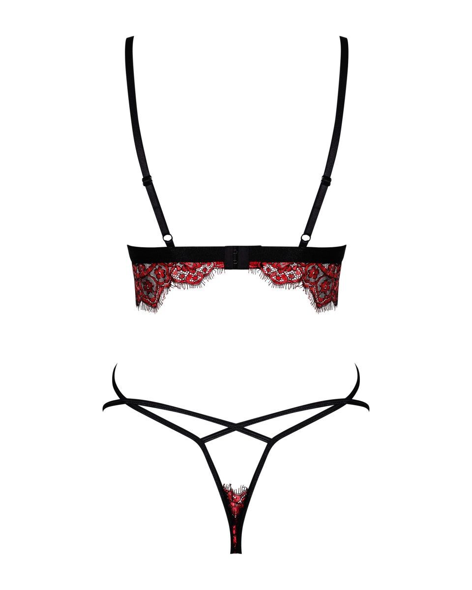 Комплект белья 'Redessia', кружевной, размер S-M, красный с черным, регулируемые бретели, без косточек