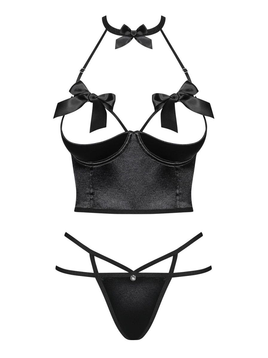 Почему стоит выбрать именно этот комплект? Во-первых, он выполнен из высококачественных материалов: 93% полиамид и 7% эластан, что обеспечивает отличную эластичность и долговечность. Во-вторых, декор в виде атласных бантиков придает комплекту игривый и романтичный вид. Этот комплект подходит для романтических вечеров, свиданий или просто для того, чтобы порадовать себя.