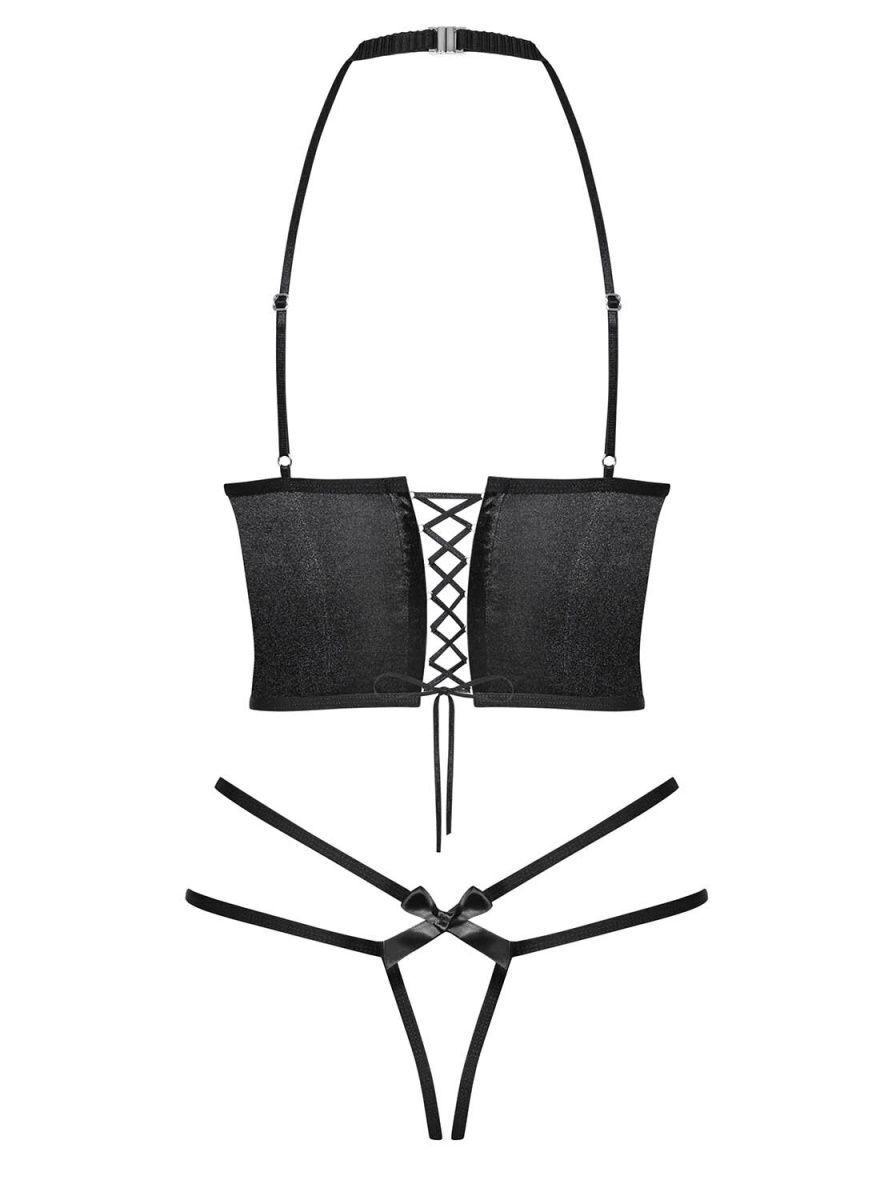 Погрузитесь в мир соблазна и уверенности с комплектом эротического белья Delishya. Этот комплект создан для тех, кто ценит комфорт и стиль, сочетая в себе элементы игривости и элегантности. Бюстгальтер-топ с открытыми чашками и шнуровкой на спине подчеркивает вашу фигуру, а несъемный чокер добавляет нотку дерзости. Трусики в стиле стринги с двойными боковыми резинками завершают образ, создавая идеальный баланс между сексуальностью и комфортом.