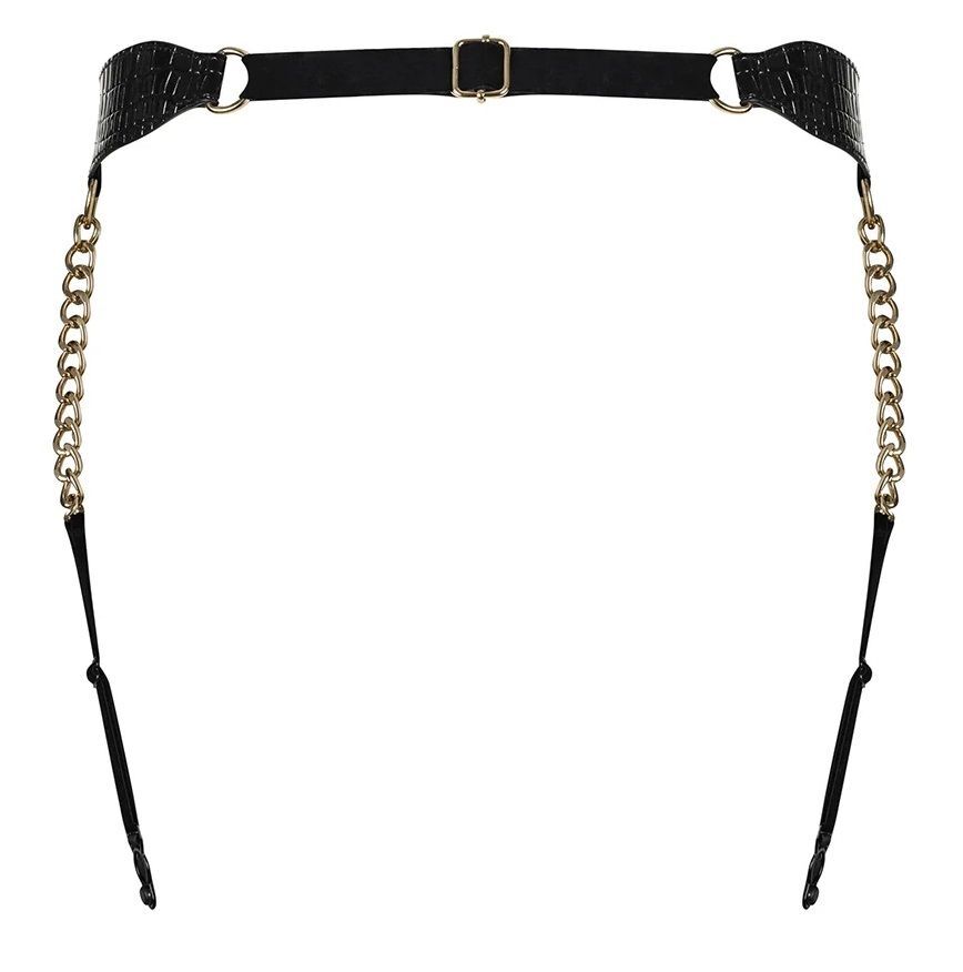 Пояс для чулок с цепочками, черный, размер S-M-L, полиуретан, регулируемая посадка