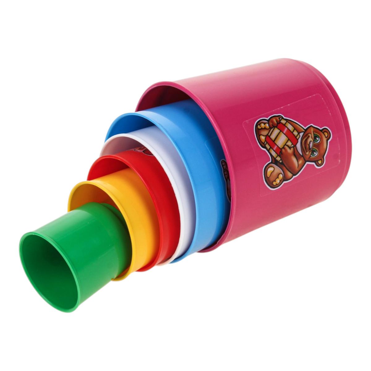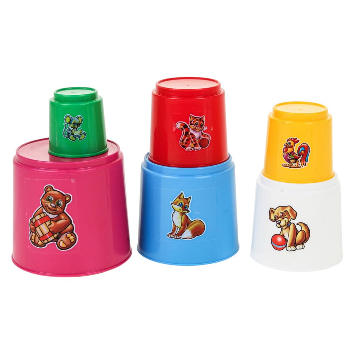 Поверхность стаканчиков гладкая и глянцевая, приятная на ощупь. Игрушка выполнена из качественного безопасного пластика без посторонних запахов. Яркие цвета и разнообразие узоров надолго удержат внимание крохи.