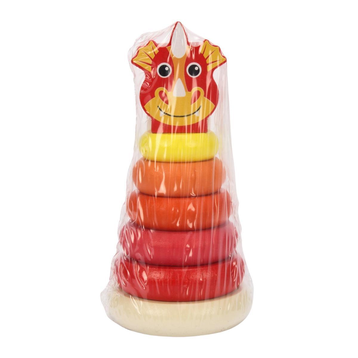 Пирамидка выполнена из натурального дерева с яркой окраской, стойкой к изнашиванию, что гарантирует долгий срок службы. Верхняя часть с мордочкой динозавра и крупными глазами делает игрушку особенно привлекательной и стимулирует визуальное восприятие ребенка. Компактные размеры позволяют легко хранить ее дома или брать с собой в дорогу, развивая у малышей интерес к обучению и игре.
