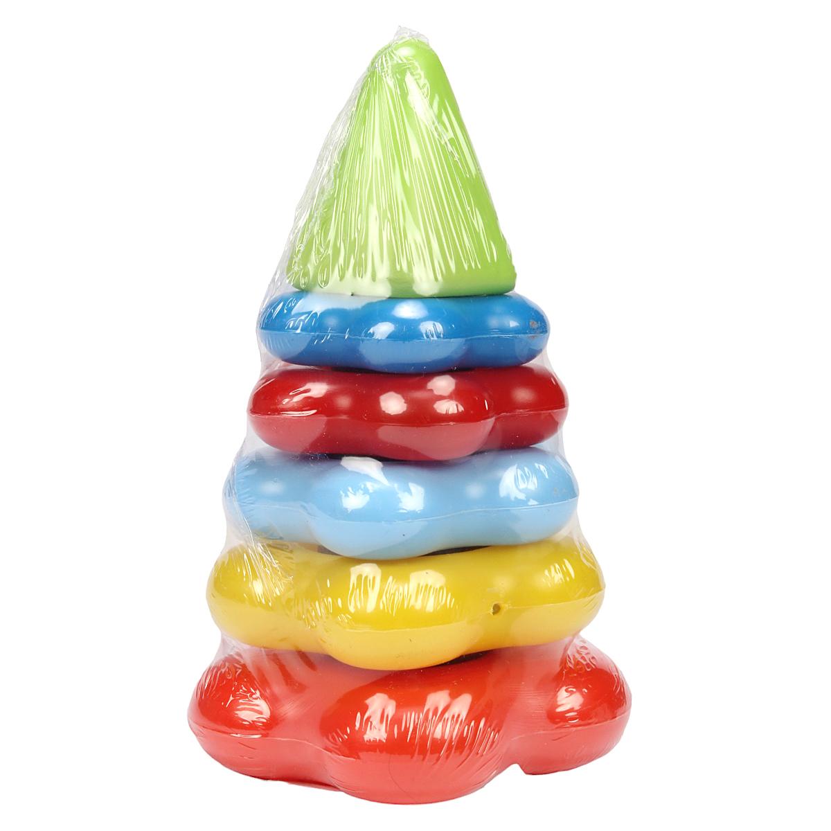 Пирамидка фигурная 5 колец 17см, каролина, полиэтилен, цветная, развивает моторику