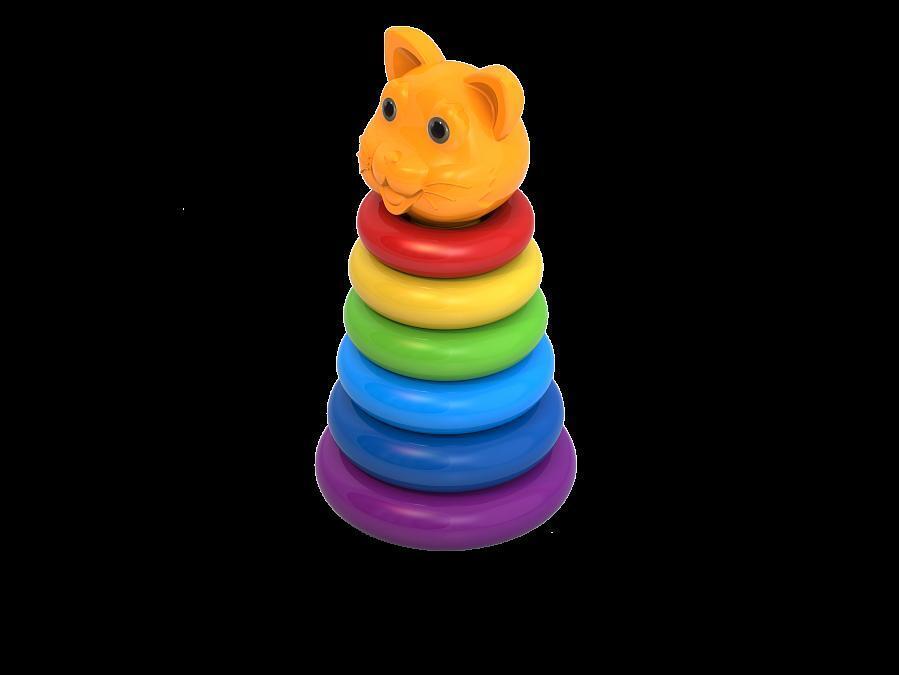 Игрушка легко собирается и подходит для детей с раннего возраста, развивая логическое мышление и пространственное восприятие. Она содержит основание и 6 разноцветных колец, которые можно нанизывать на вертикальную ось, а также включает фигурку кота на вершине в виде головы с милым дизайном. Размеры — высота 28 см, все детали изготовлены из прочного пластика без острых кромок, что гарантирует безопасность.