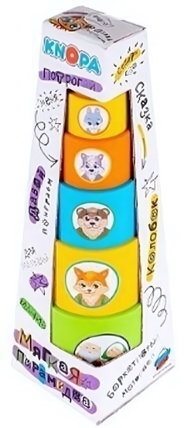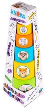 Пирамидка мягкая развивающая «Колобок» 5 колец с животными, стаканчики-вкладыши, КНОПА