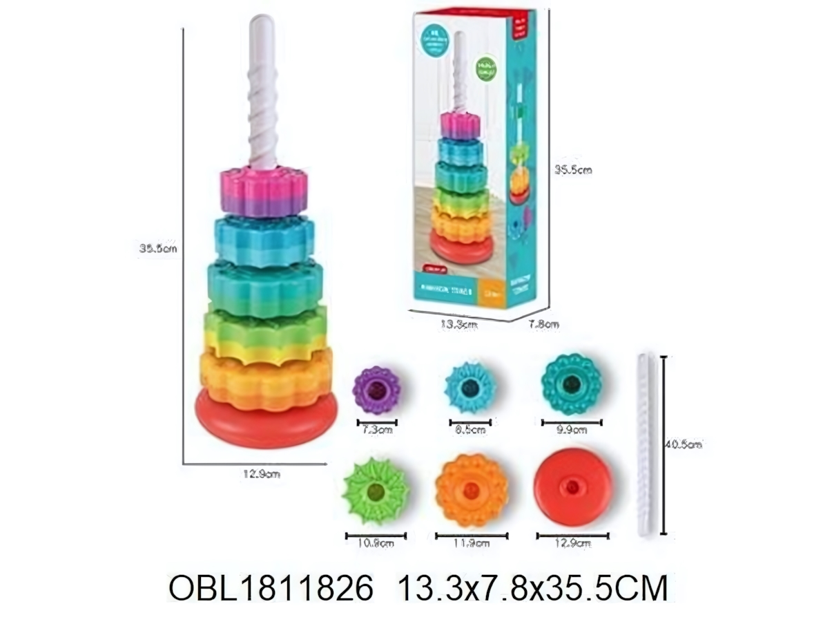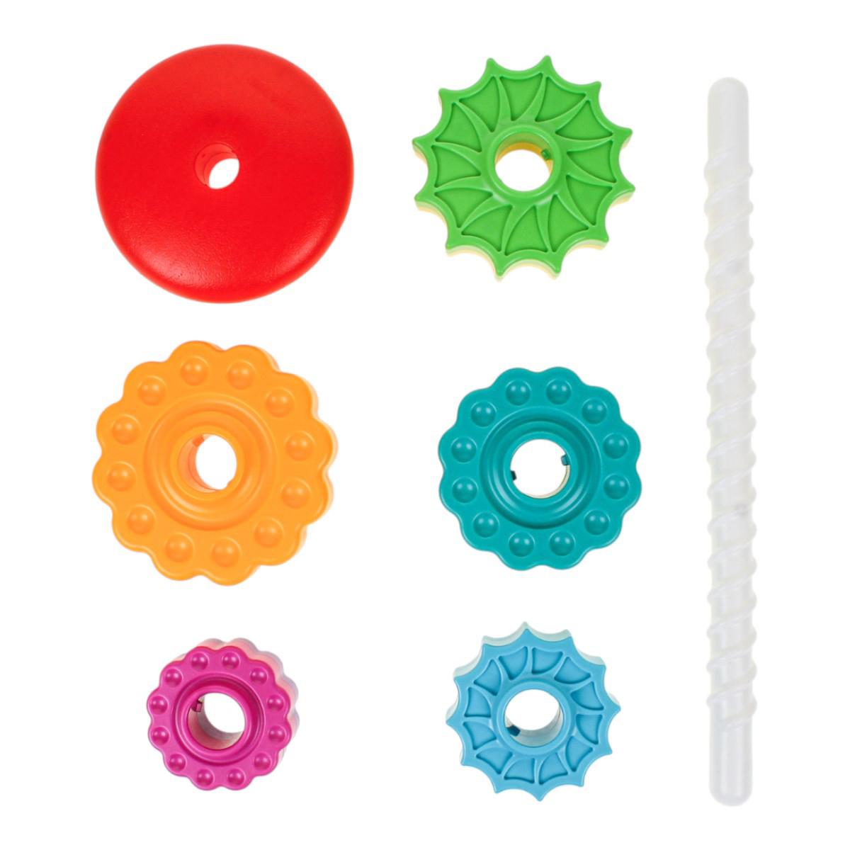 - Накручивающийся механизм: 5 ярких колец-цветков легко накручиваются на спиральный стержень, обеспечивая интересное и полезное времяпрепровождение.
