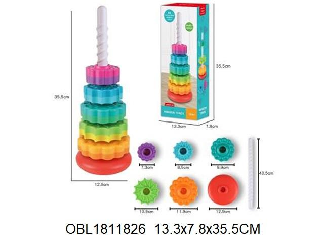 пирамидка винтовая развивающая 37см, 5 колец-цветков, накручиваются, пластик, 13.5*8*35.5см