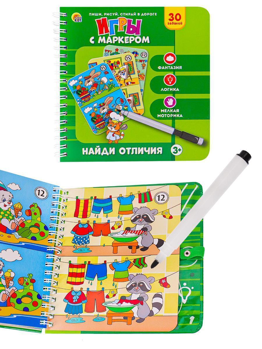 Развивающая игра с маркером «Пиши-рисуй-стирай», 30 заданий, тренировка логики и моторики