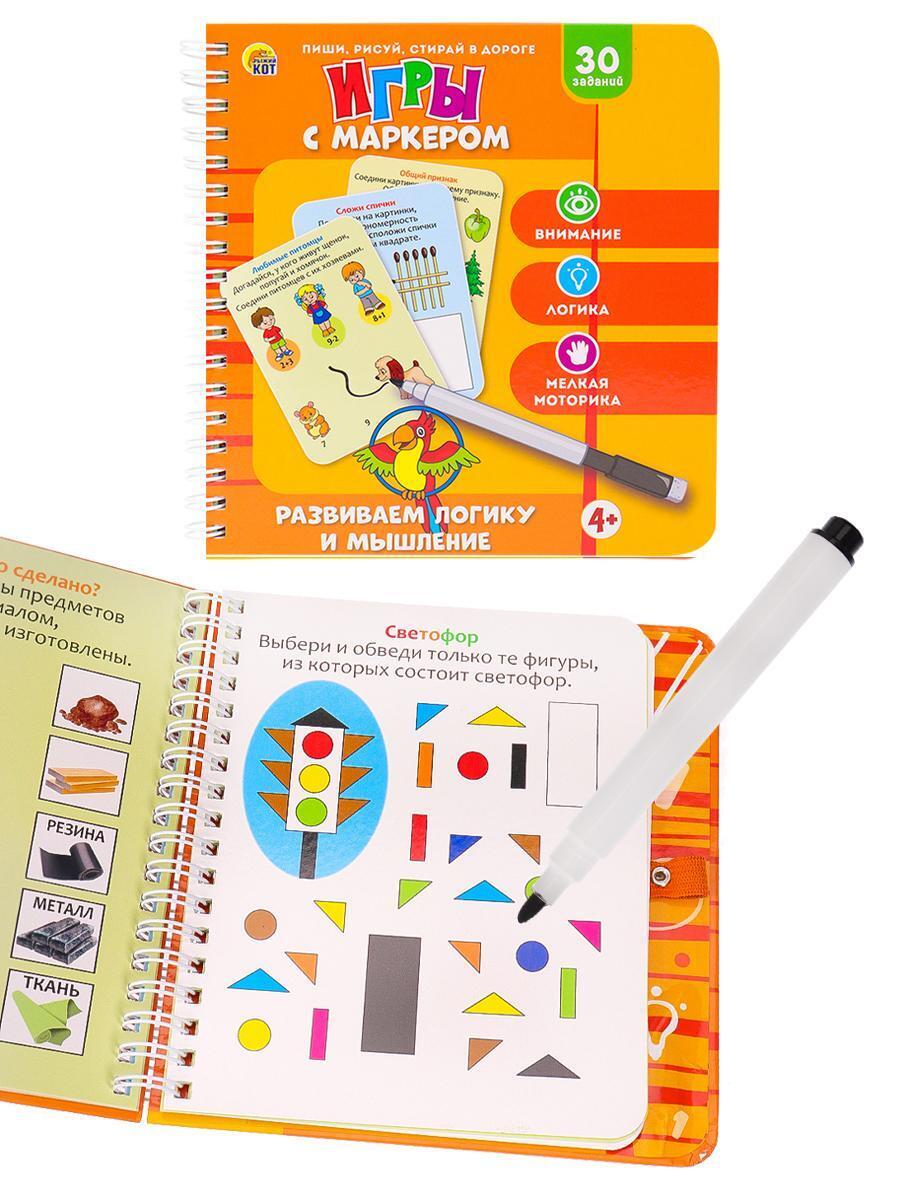 Блокнот с маркером 'Игры с маркером', 30 заданий, развиваем логику и мышление