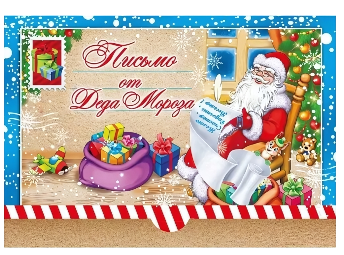 Вложите письмо в конверт и вручите адресату лично или отправьте по почте. Идеально подходит для поздравления детей, друзей, коллег и близких. Можно использовать как элемент новогоднего квеста, сюрприза под ёлкой или дополнение к основному подарку.