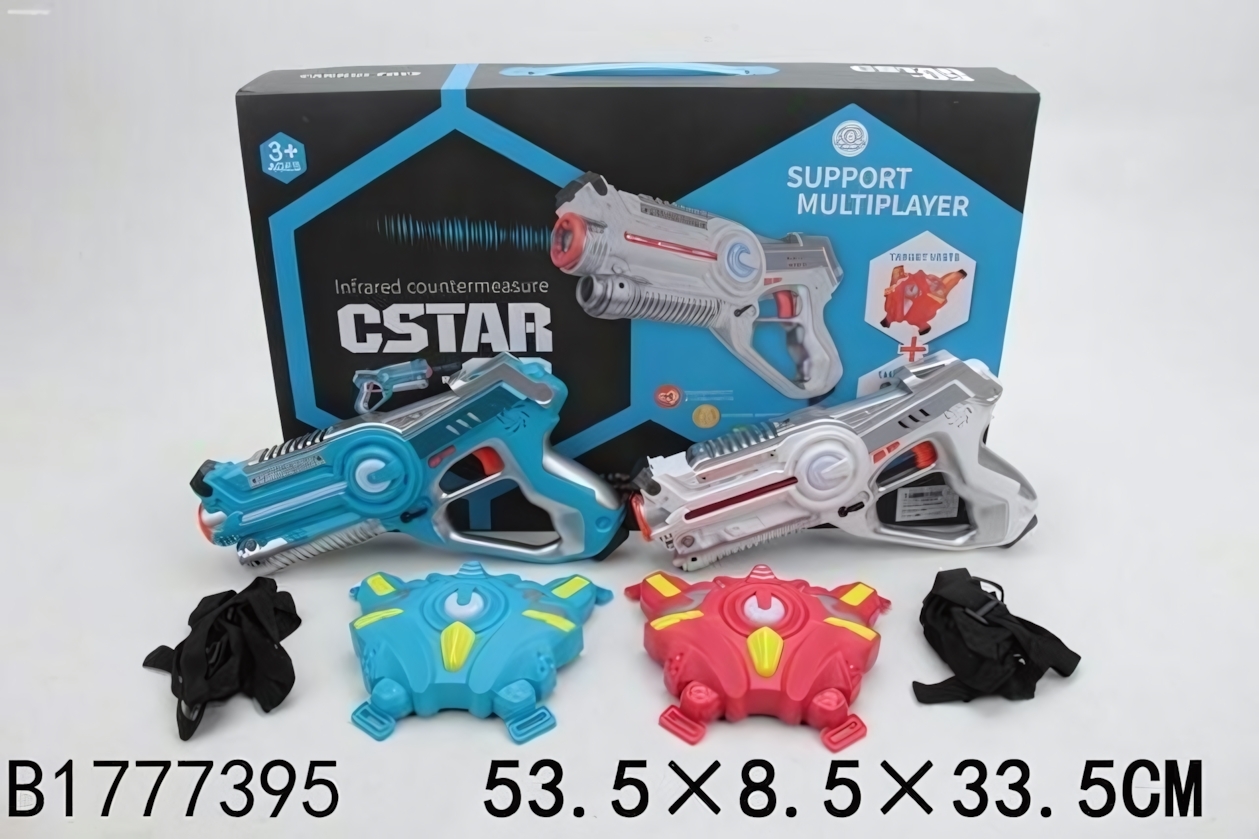 Предлагаем игровой комплект из двух игрушечных пистолетов с инфракрасным наведением и двумя мишенями, идеально подходящими для развития ловкости и точности у детей старше трех лет. Яркий дизайн в голубых, серебристых, красных и черных цветах делает аксессуары привлекательными и безопасными для малышей.