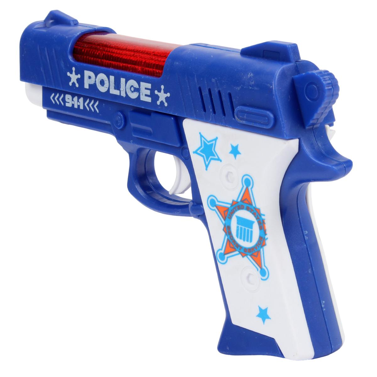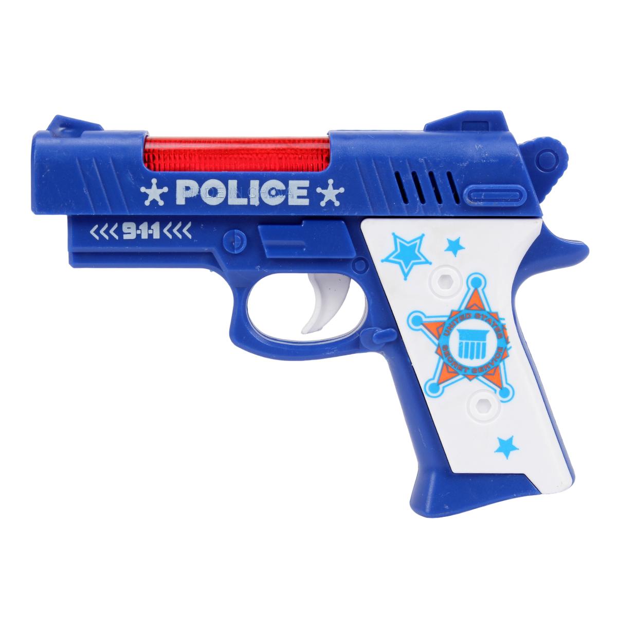 Этот игрушечный пистолет станет отличным подарком для любого мальчика, который любит играть в полицейских или спасательных сюжетах. Он выполнен из безопасного пластика и имеет компактные размеры, что делает его идеальным для детских рук. Синий и белый цвет с красными элементами придают ему стильный вид, а надписи "POLICE" и "9-1-1" добавляют реалистичности.