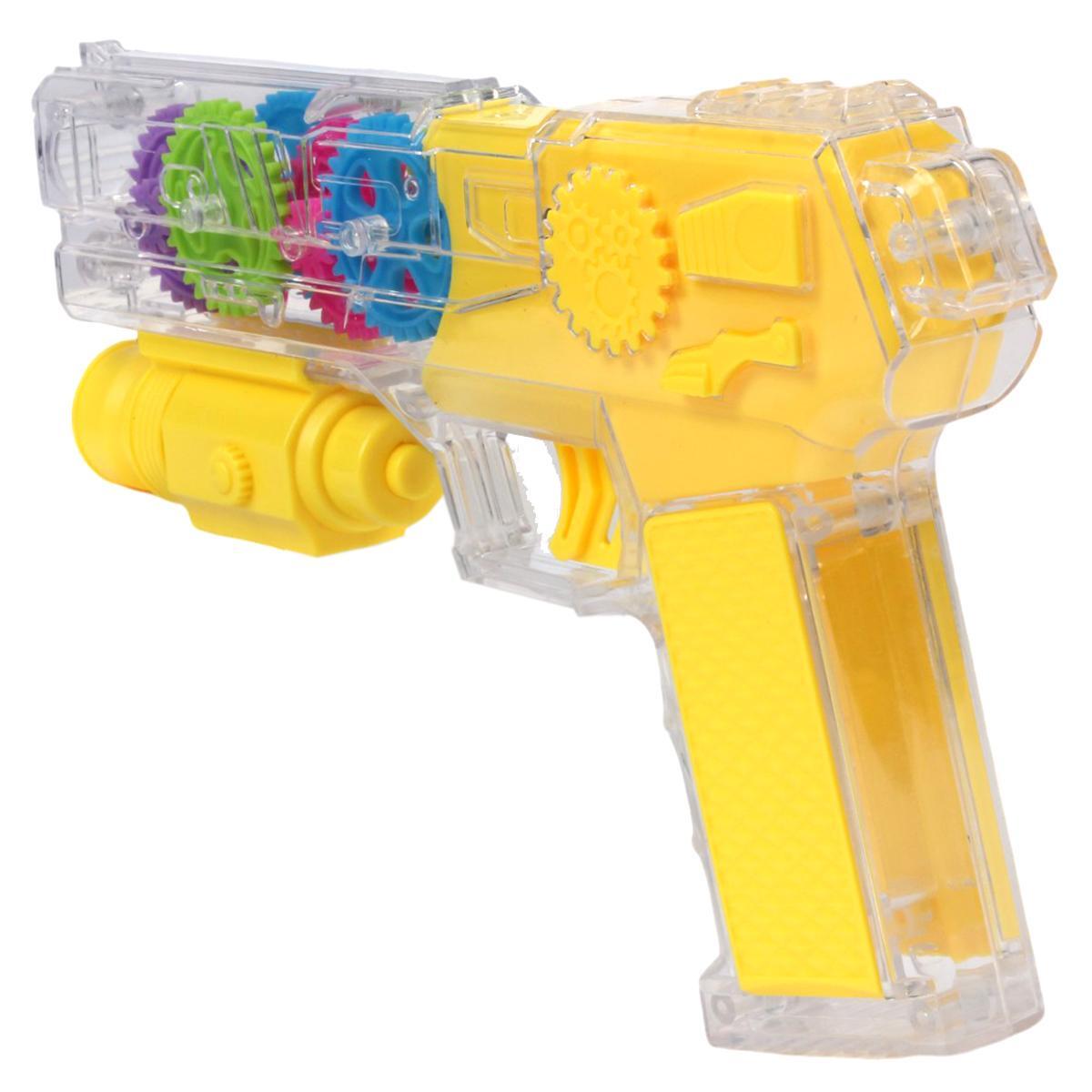 Пистолет на батарейках 20см с световыми и звуковыми эффектами, прозрачный дизайн, для детей